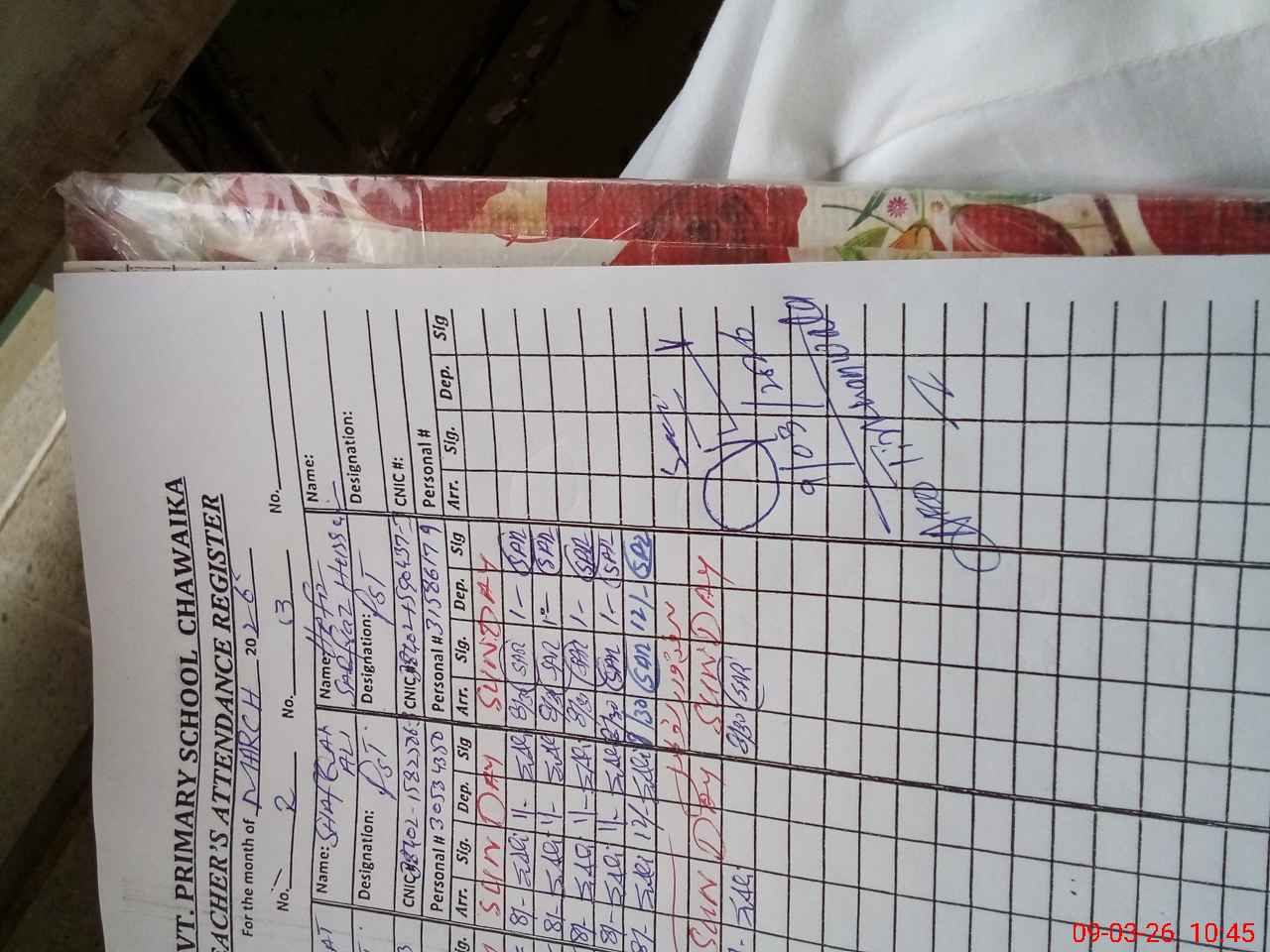 | Name: AS**** HA**** Designation: (School Headmaster's/Headmistress's) PST Phone/Cell Number: 03**** |