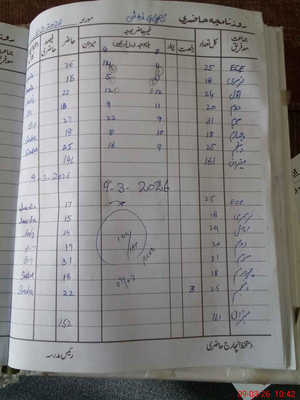 | No. of Students Present - Female | 0 | 8 | 12 | 9 | 22 | 8 | 16 | 79 | ||||||||