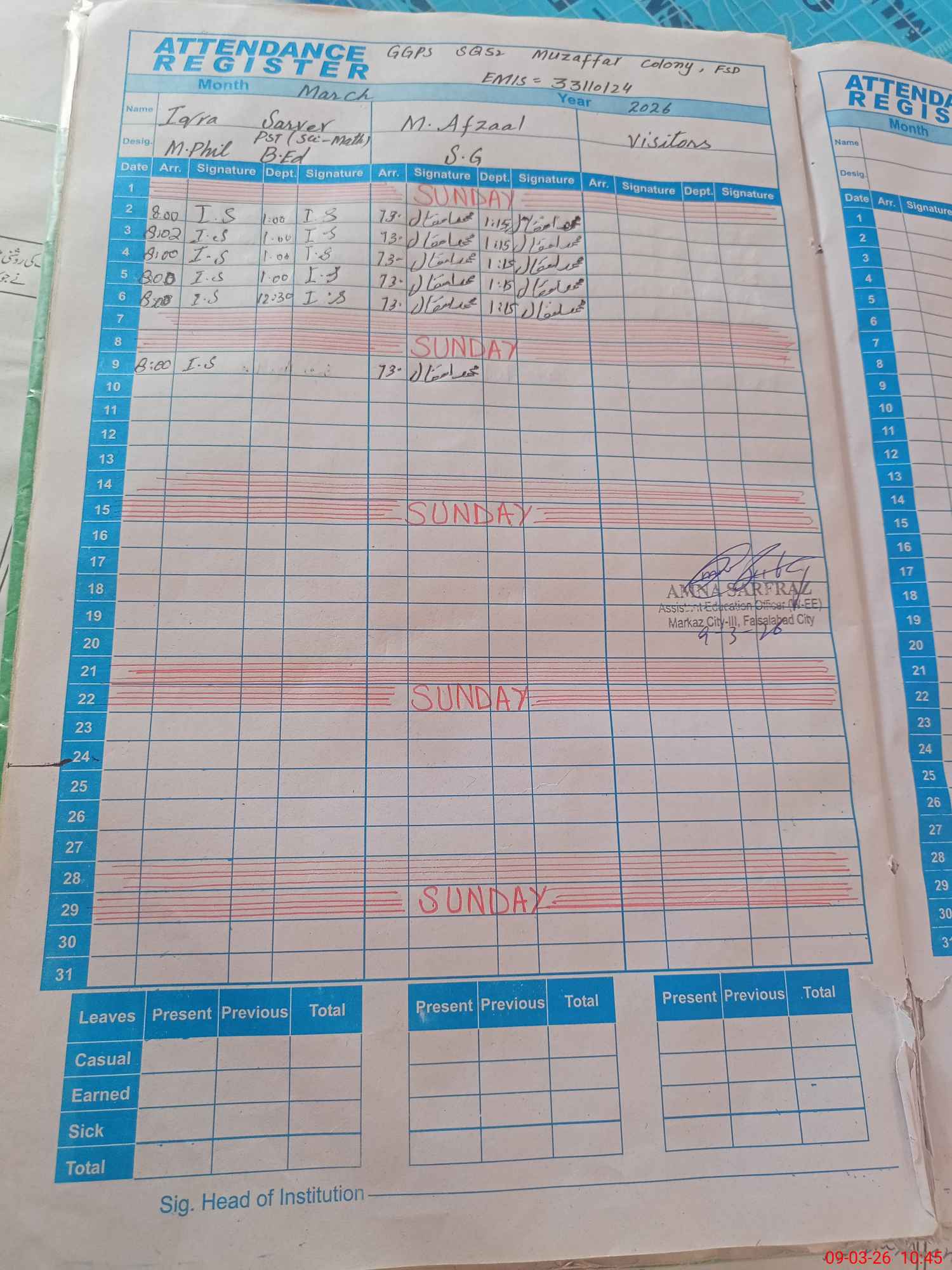 | Leave | Duty | Absent | Maternity | Medical | Ex- Pak |