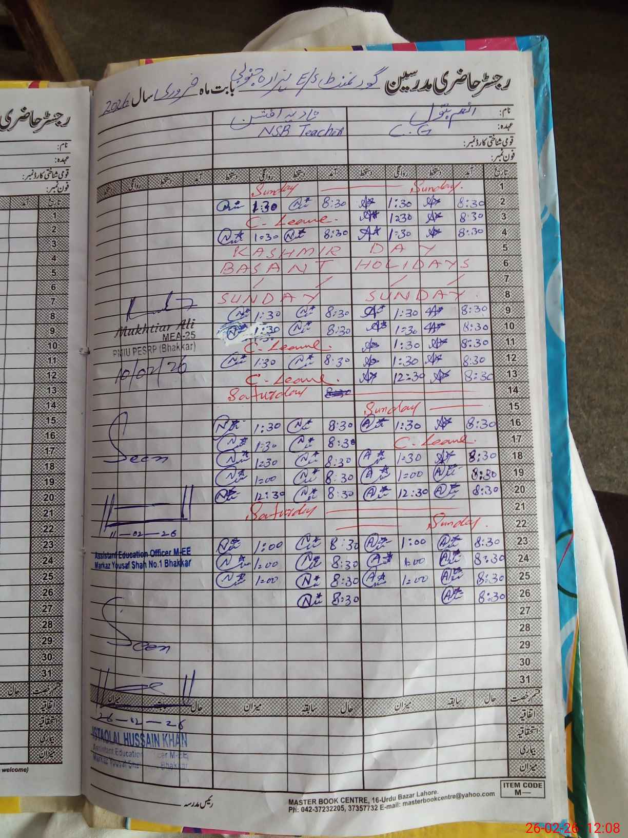 | CNIC | Full Name | Designation | R/C | Absence During Last Calender Month |