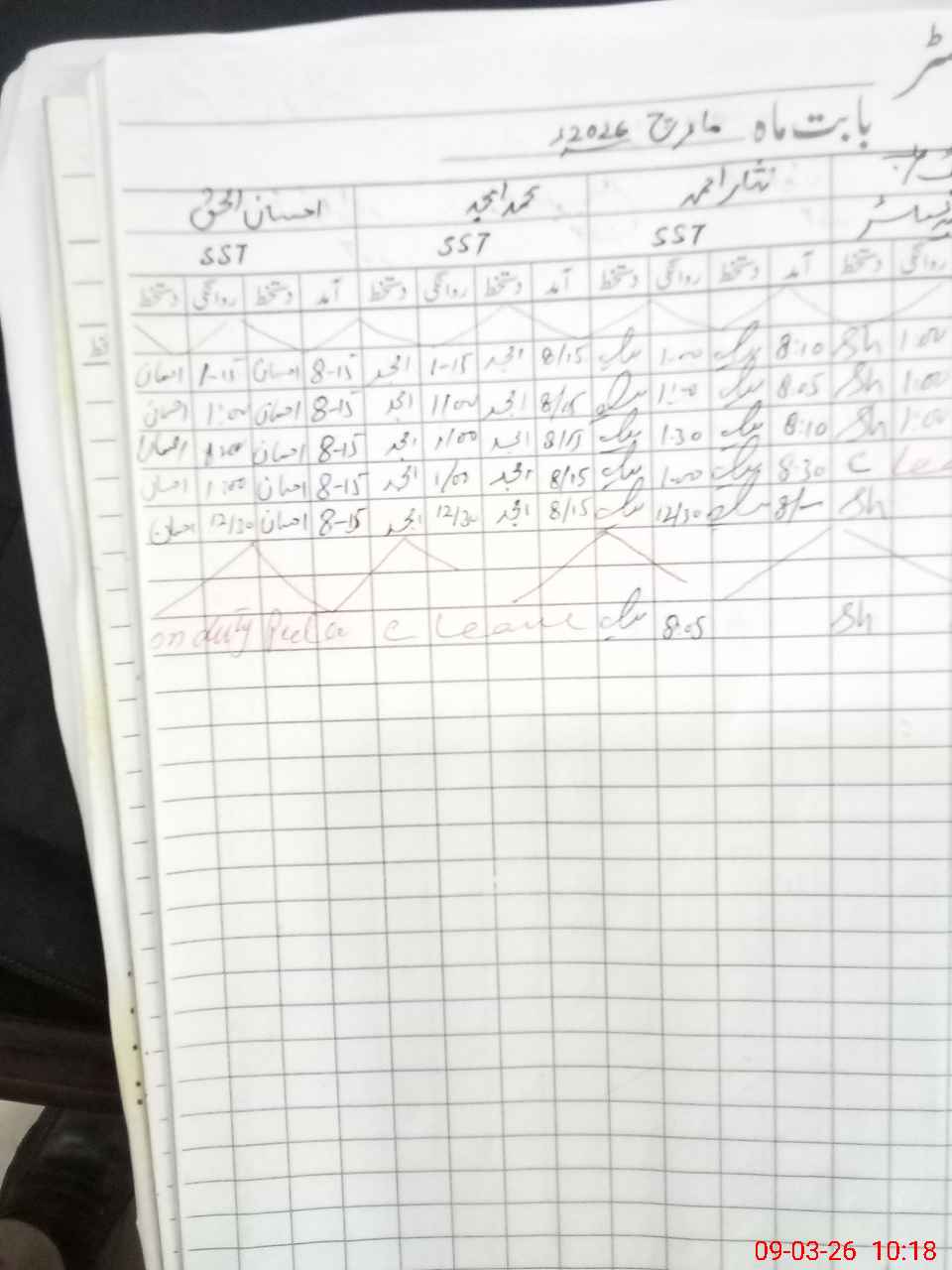 | Leave | Duty | Absent | Maternity | Medical | Ex- Pak |