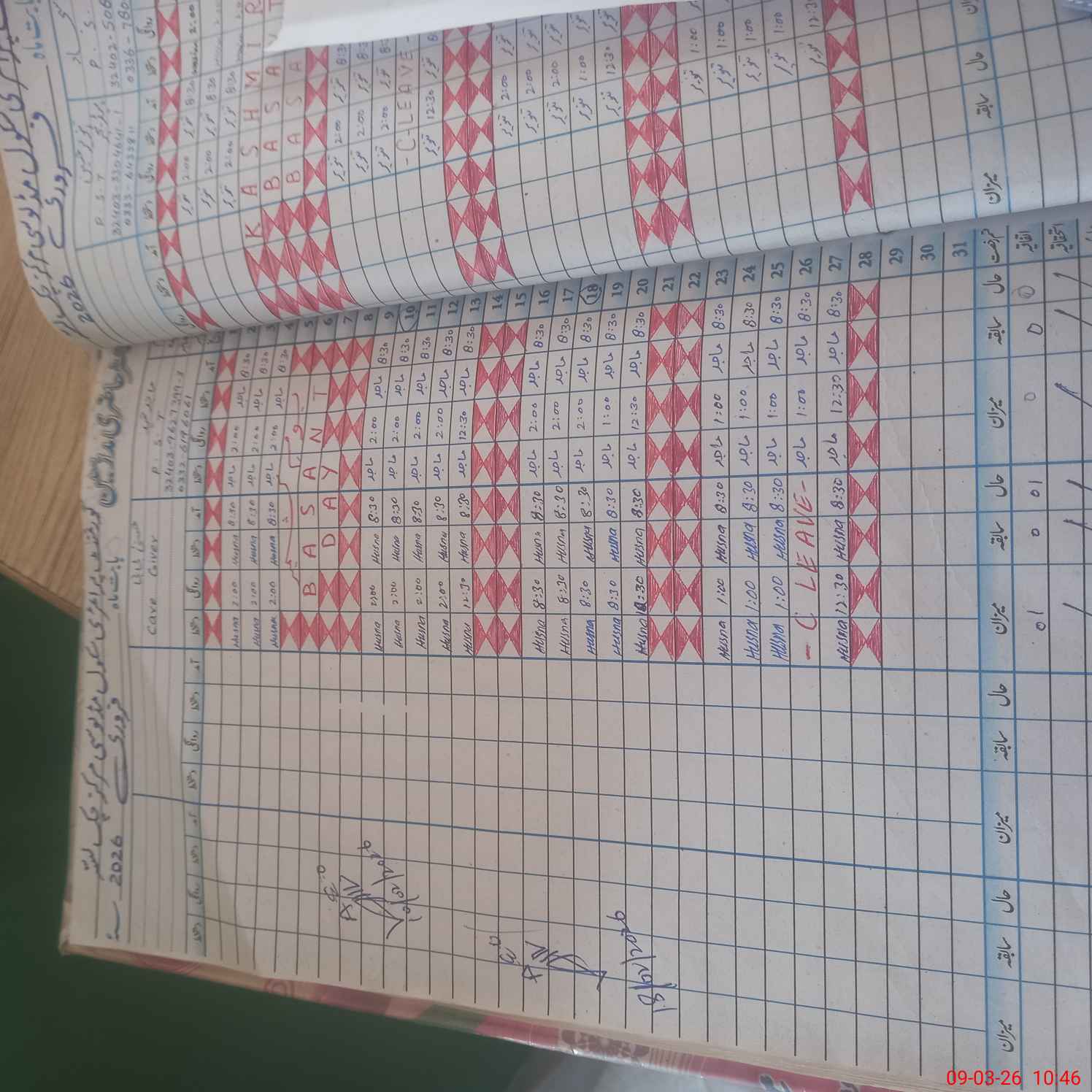 | Leave | Duty | Absent | Maternity | Medical | Ex- Pak |
