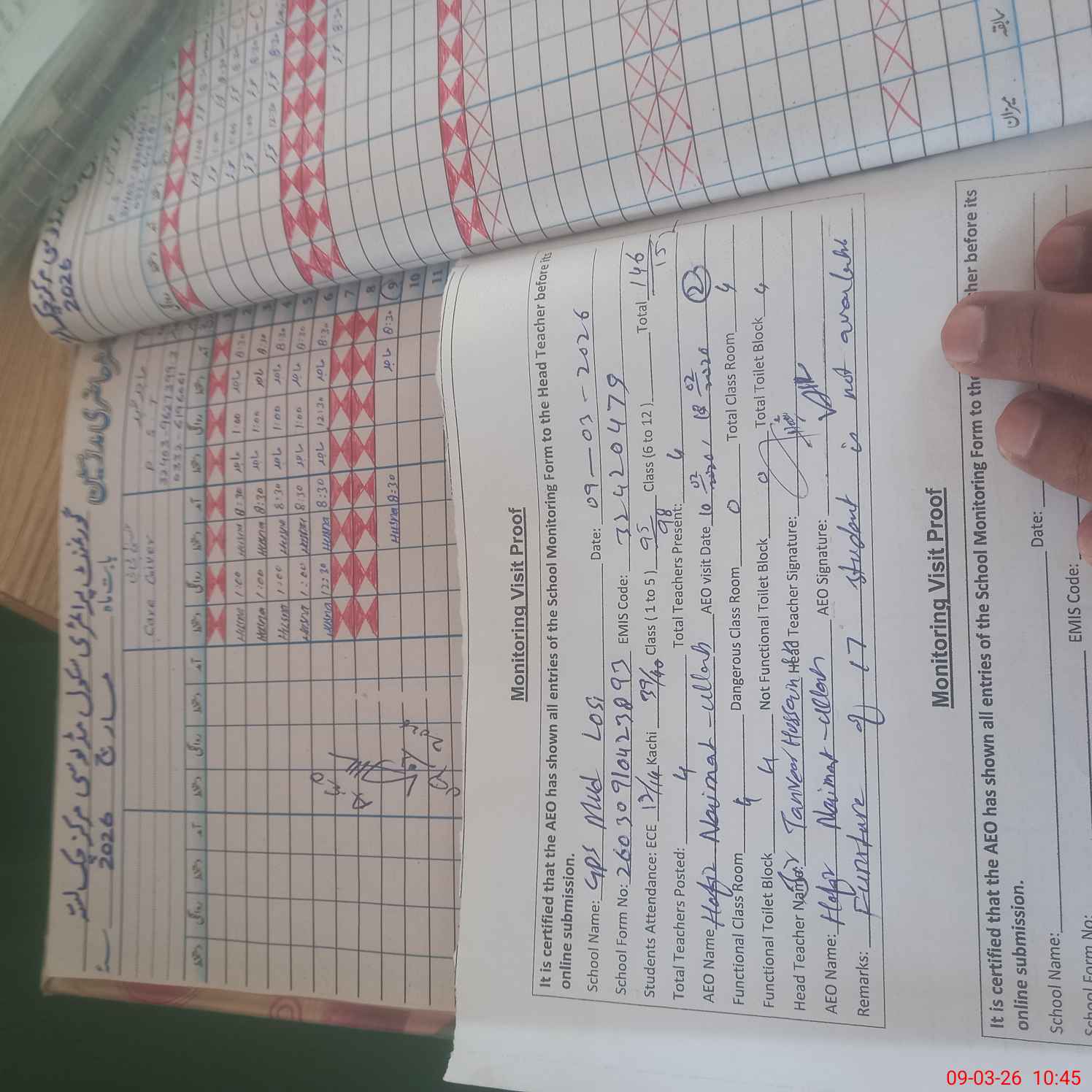 | Attendance Register | Head Teacher | MEA with School | Visit Proof |