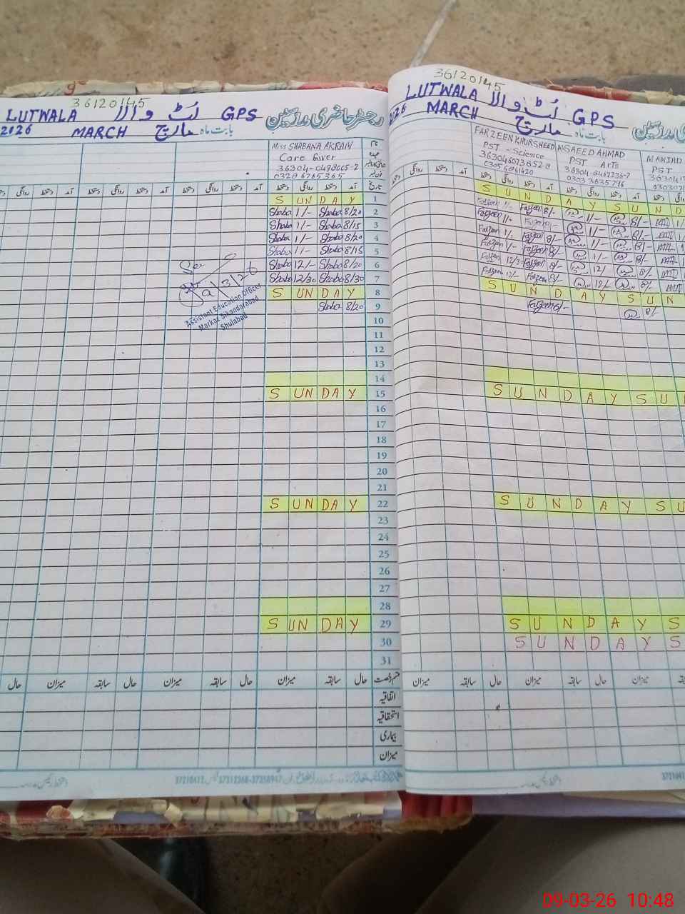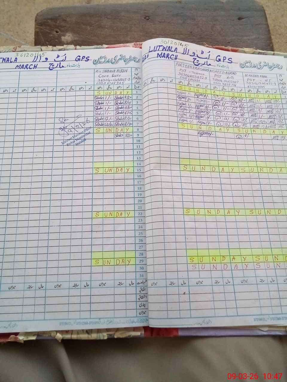 | Name: Mu**** Am**** Kh**** Designation: (School Headmaster's/Headmistress's) PST Phone/Cell Number: 03**** |