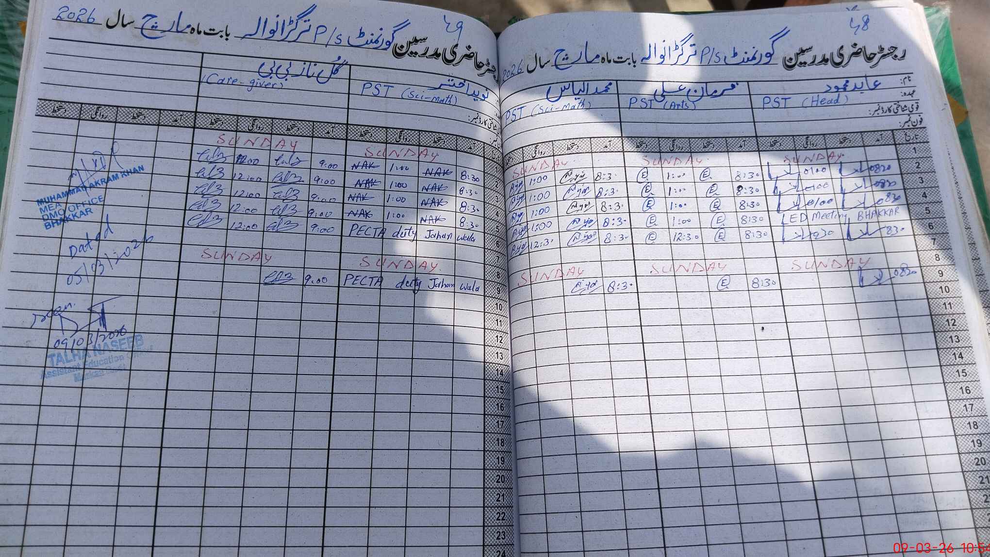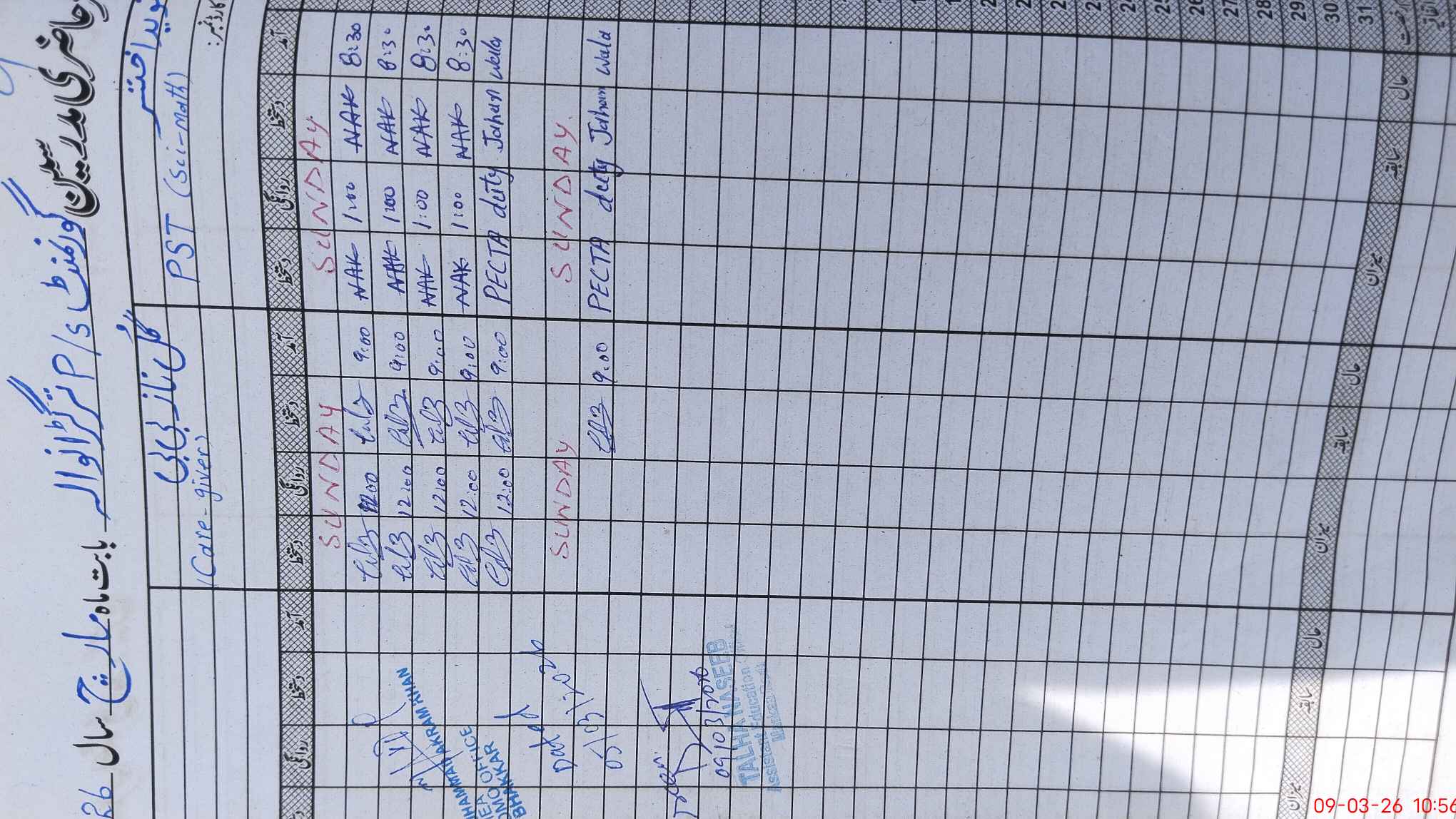 | 38**** | Na**** Ak**** | PST Science/Maths | Regular | 0 | 0 | 0 | 0 | 0 | 0 | 0 | 0 | 0 | Exam Duty |