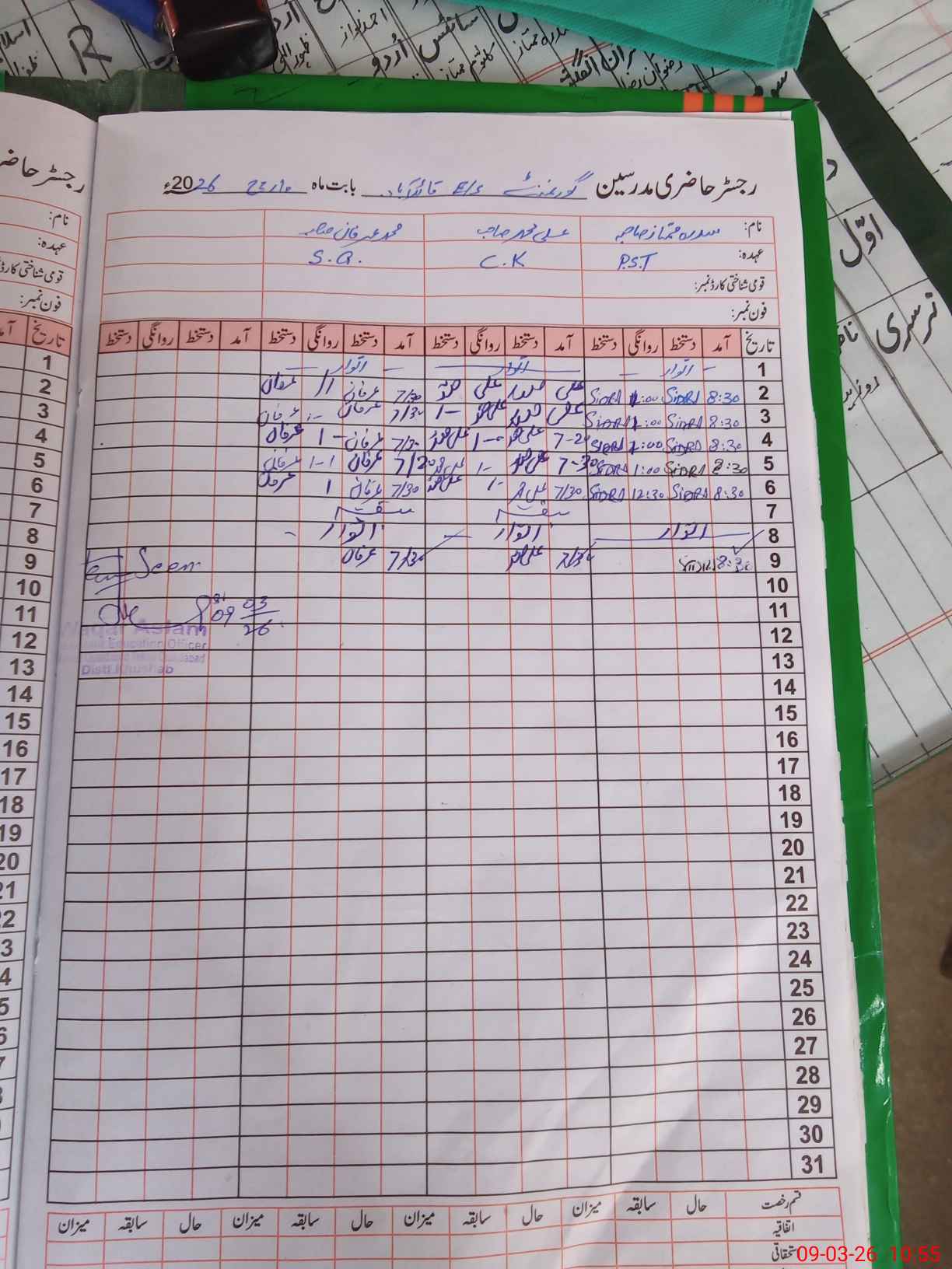 | CNIC | Full Name | Designation | R/C | Absence During Last Calender Month |