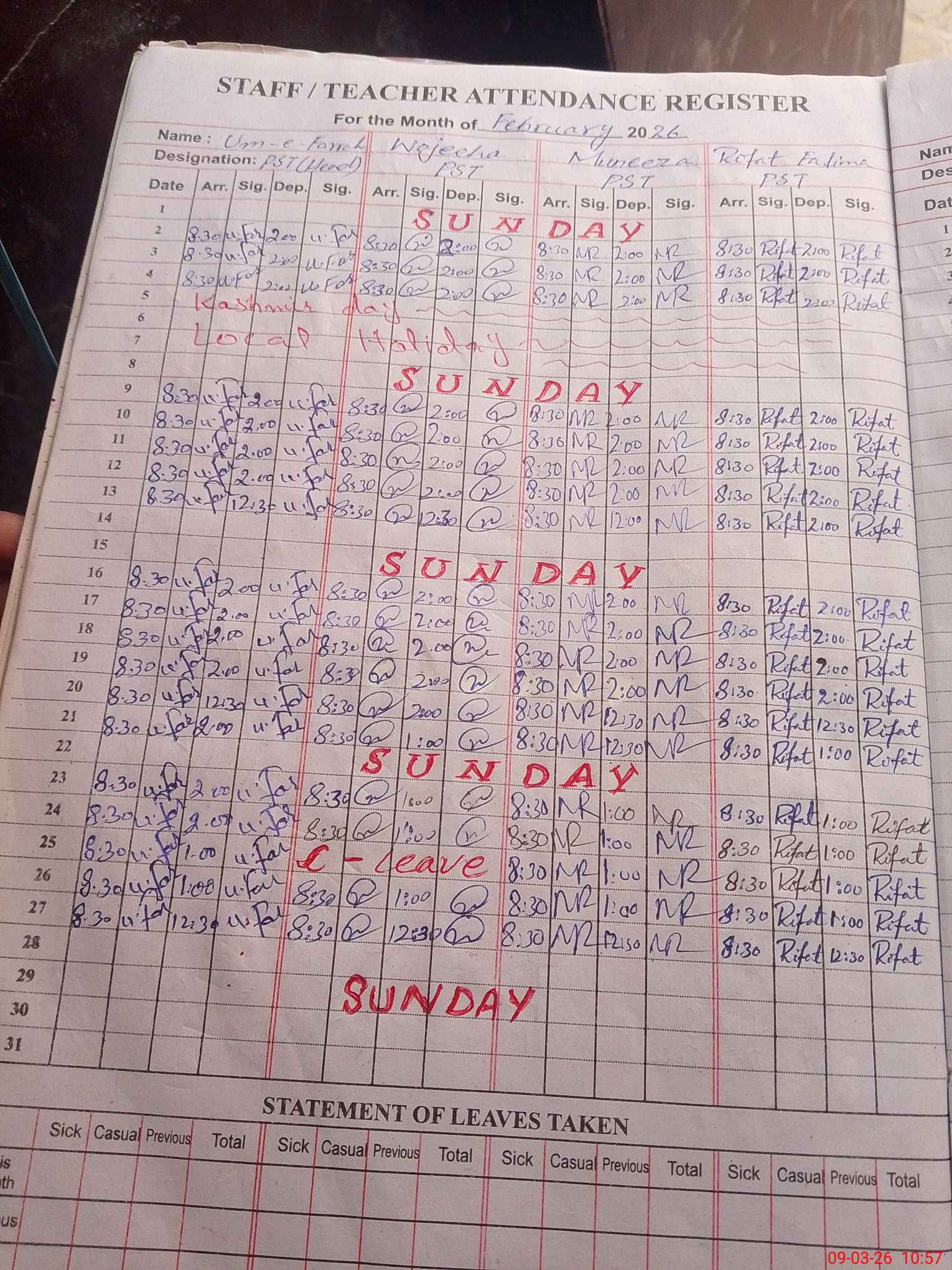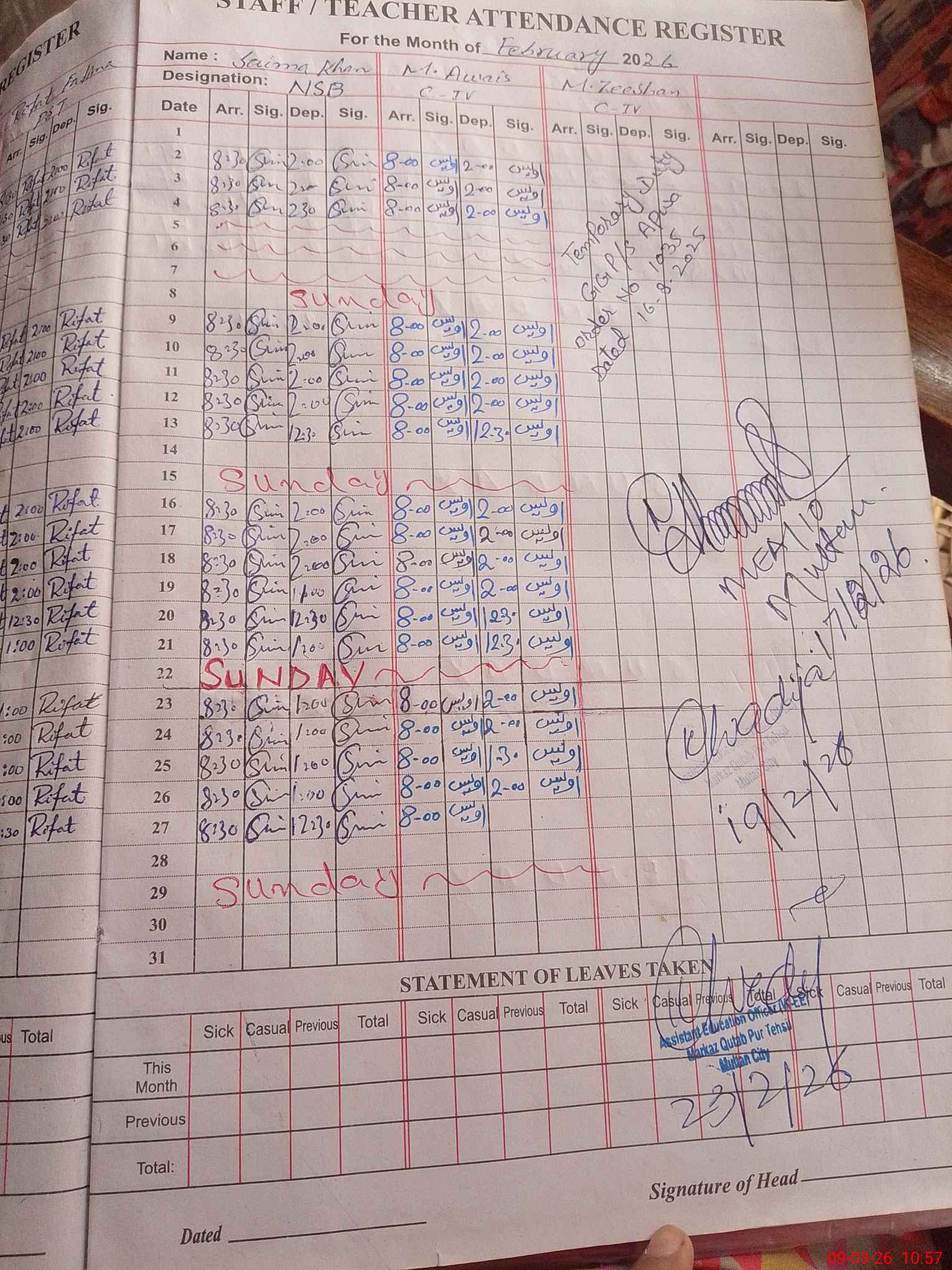 | Name: Um**** Fa**** Designation: (School Headmaster's/Headmistress's) PST Phone/Cell Number: 03**** |