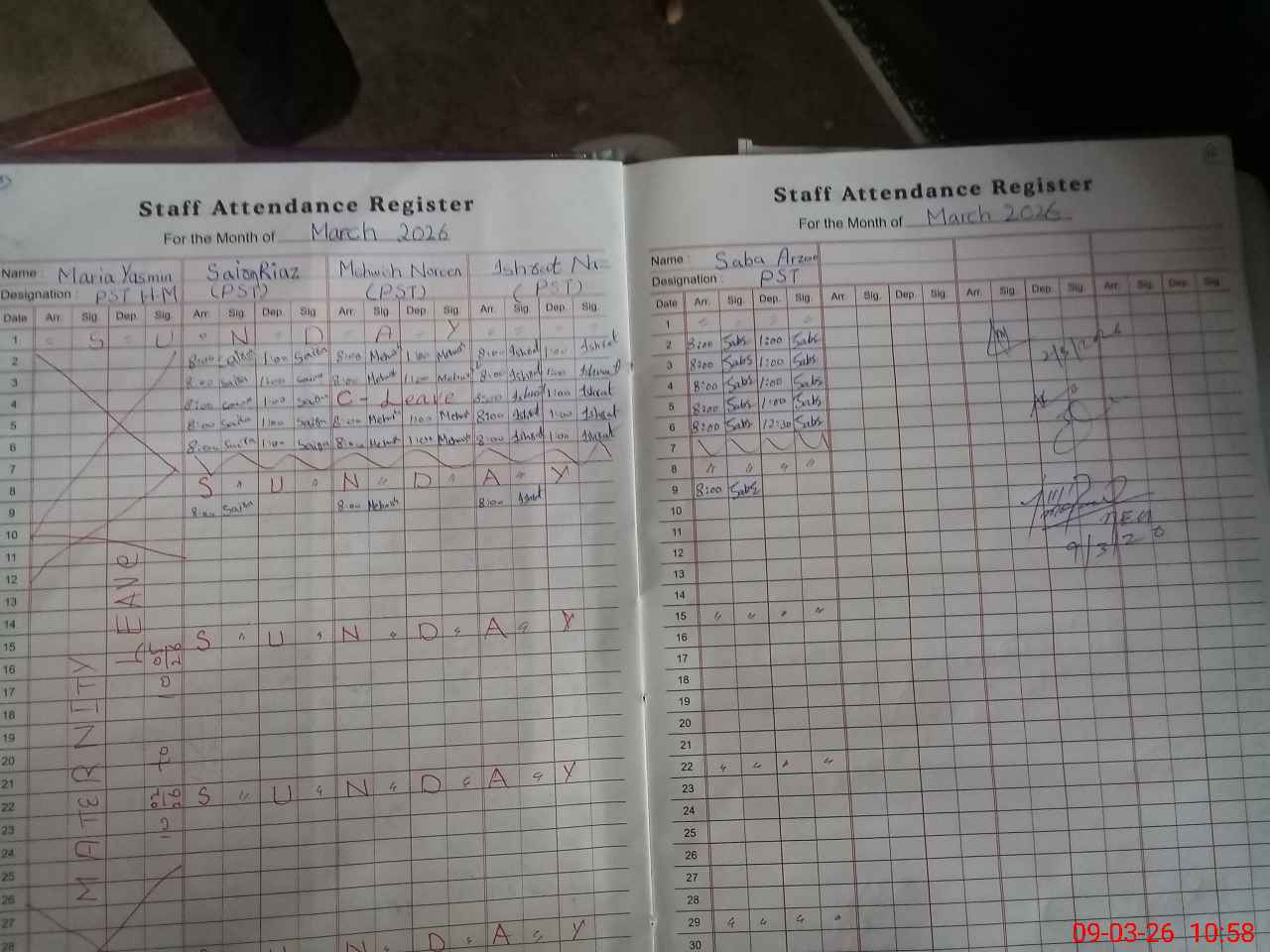 | Attendance Register | Head Teacher | MEA with School | Visit Proof |