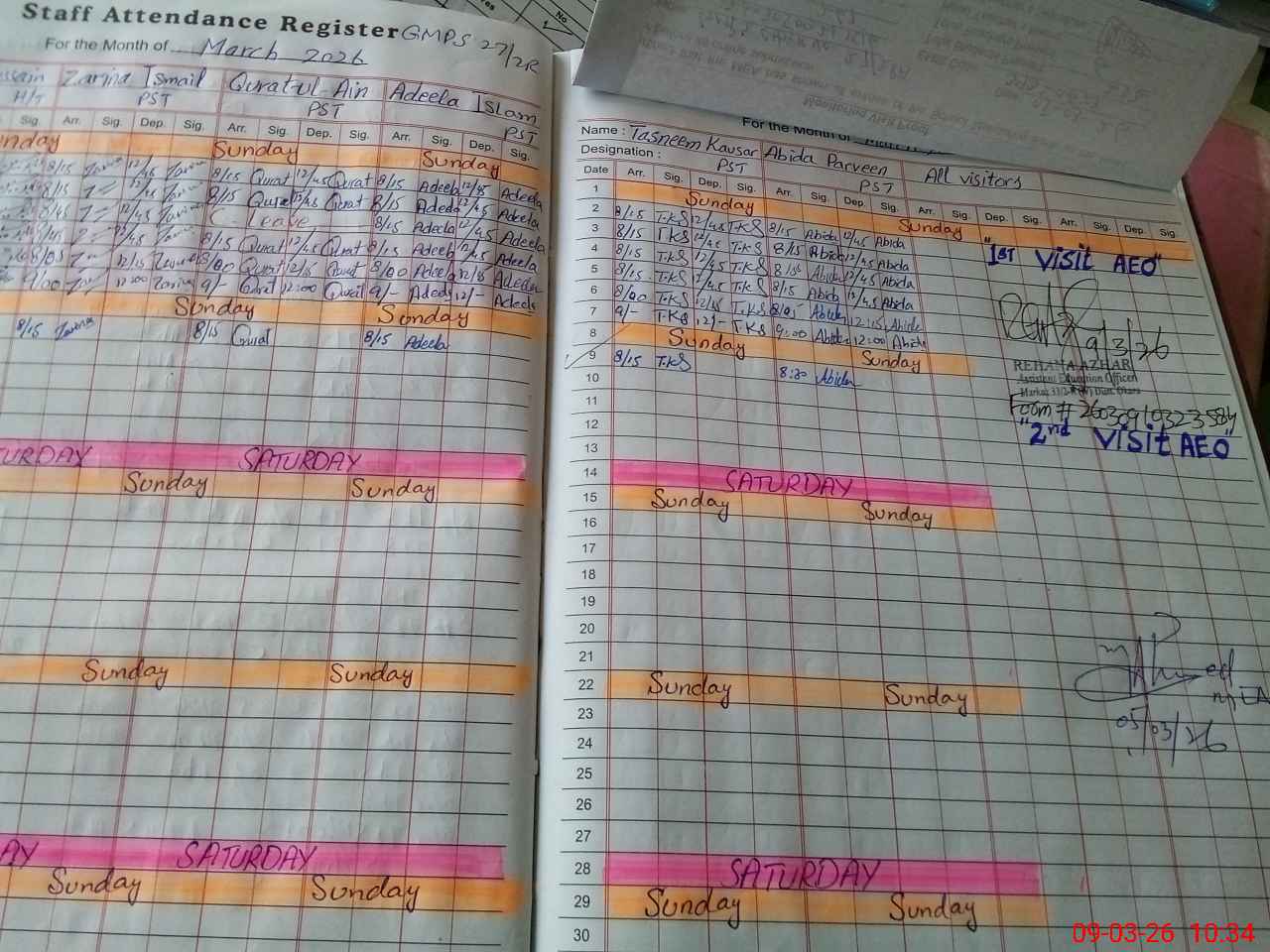 | Attendance Register | Head Teacher | MEA with School | Visit Proof |