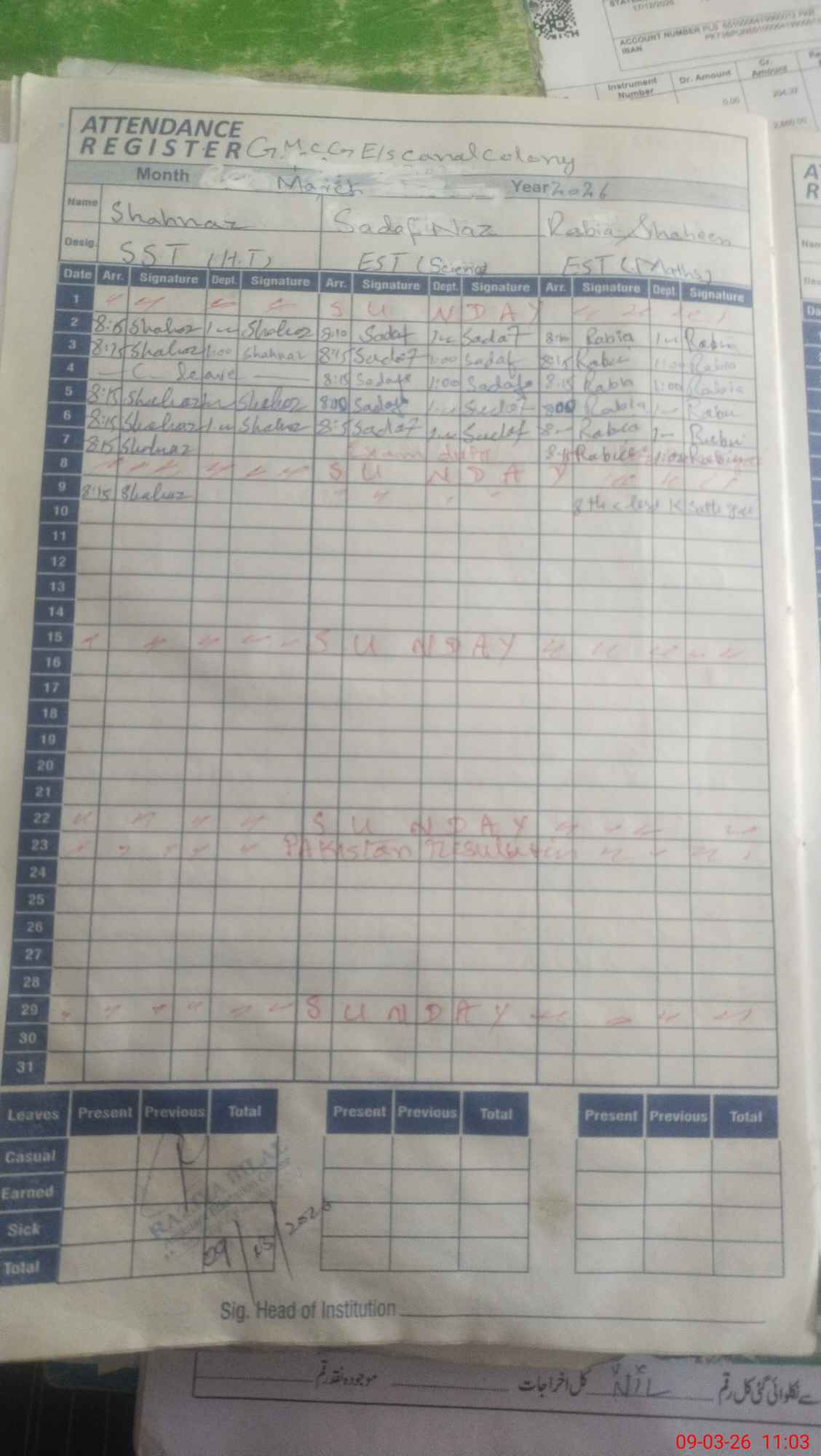 | 35**** | So**** Ba**** | PST Science/Maths | Regular | 0 | 0 | 0 | 0 | 0 | 0 | 0 | 0 | 0 | Exam Duty |