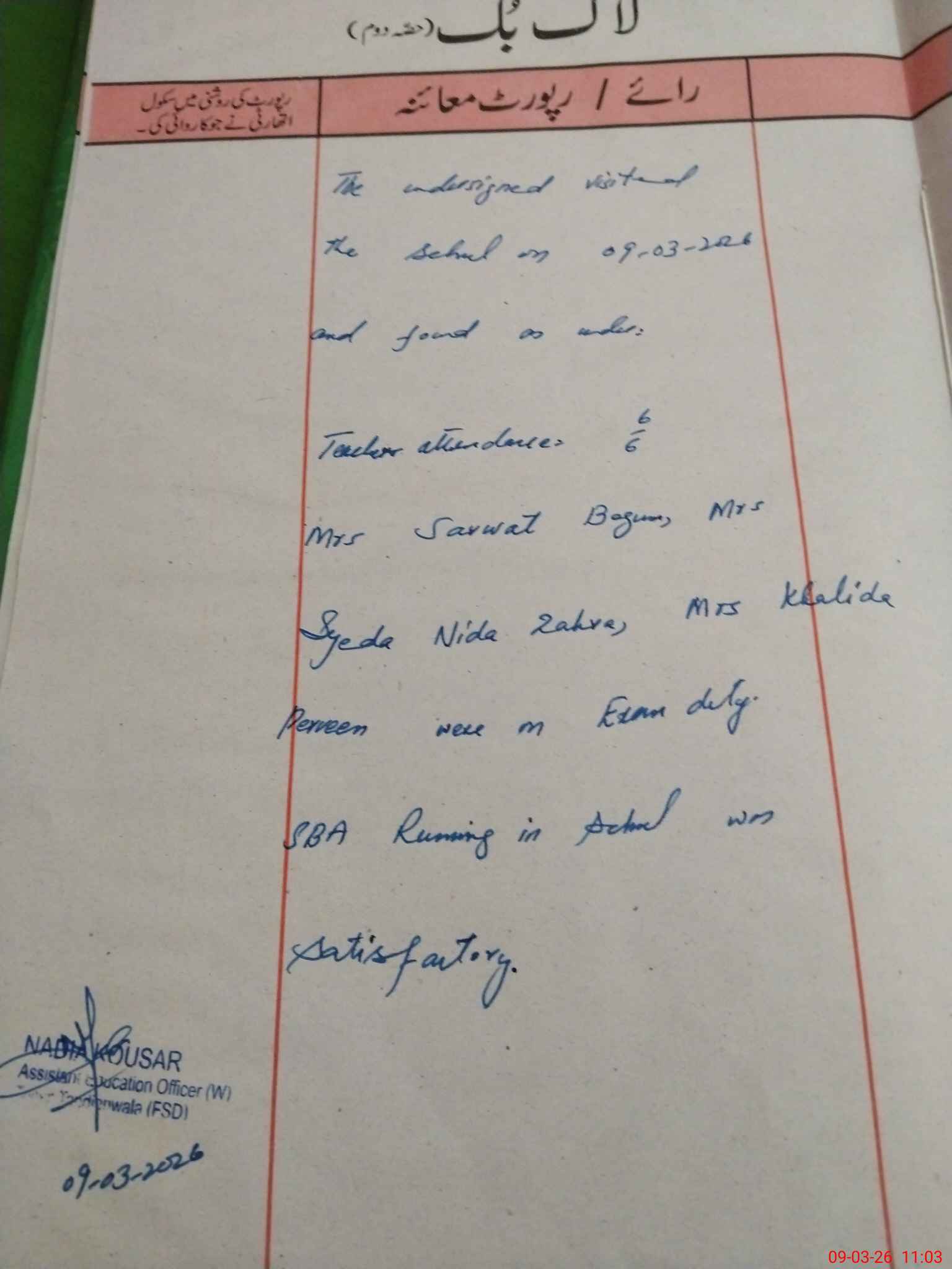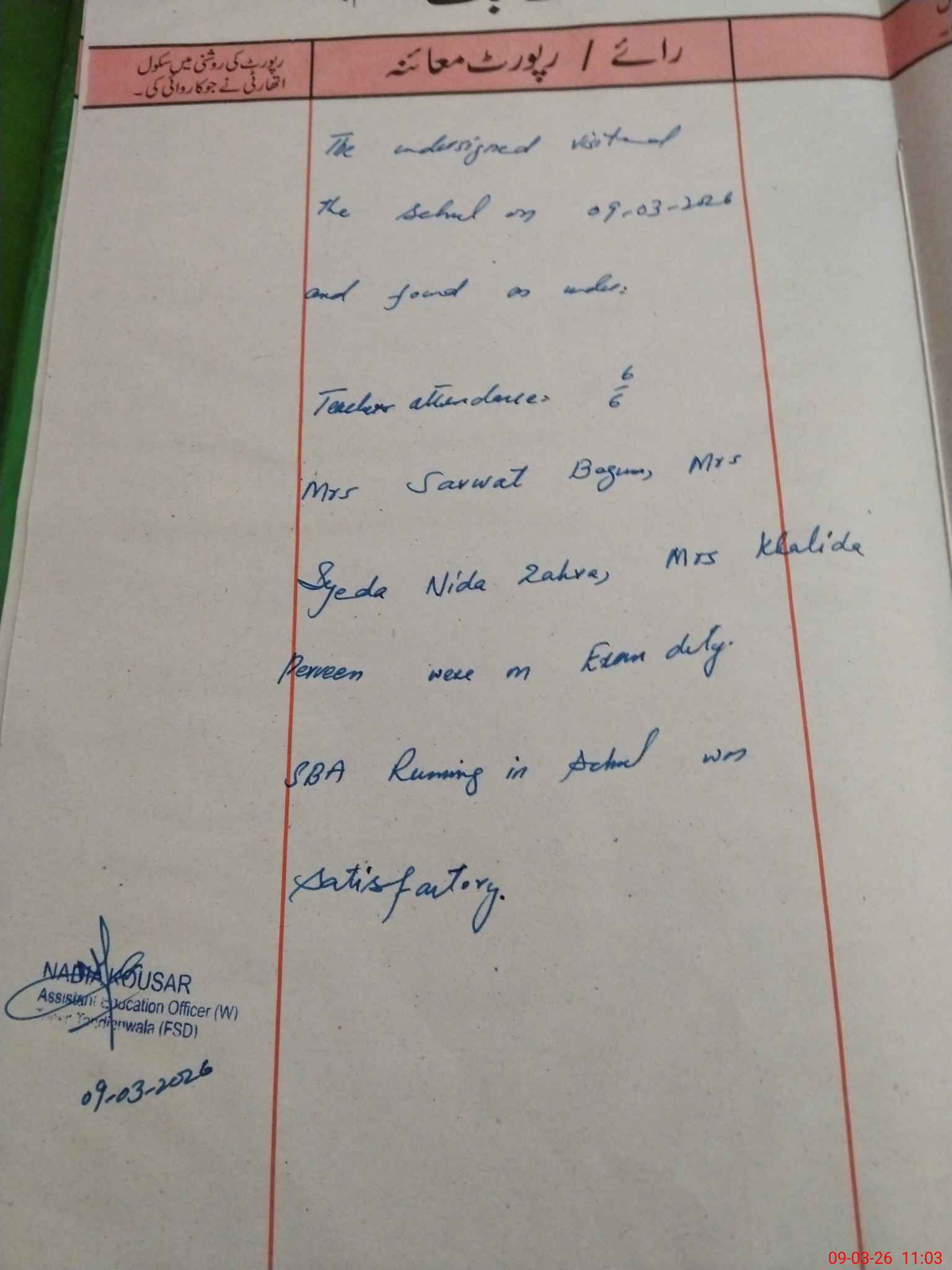 | Certified that this School was Inspected by the Undersigned MEA/DMO Today and the Information Stated Above is as Per Record. | |||||
