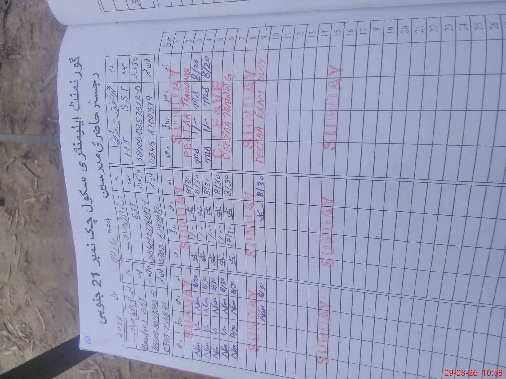 | 38**** | Sa**** Ul**** | PST Science/Maths | Regular | 0 | 0 | 0 | 0 | 0 | 0 | 0 | 0 | 0 | Exam Duty |