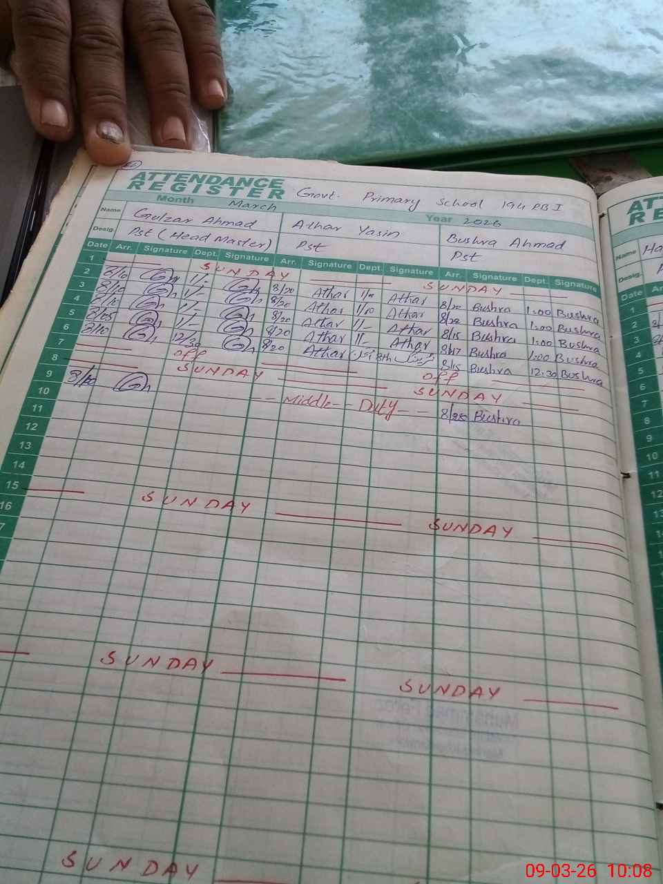 | 33**** | At**** Ya**** | PST Arts | Regular | 0 | 0 | 0 | 0 | 0 | 0 | 0 | 0 | 0 | Exam Duty |