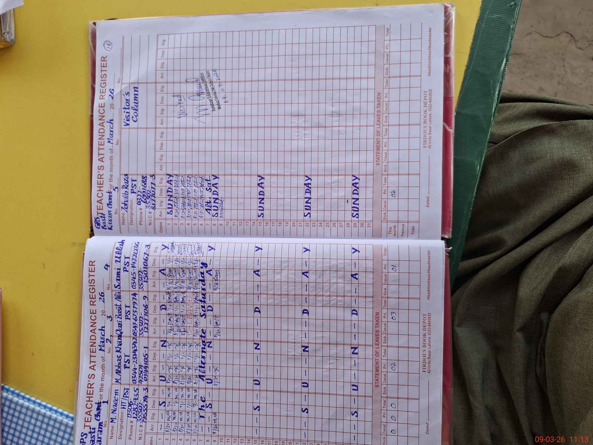 | Name: RA**** MU**** NA**** Designation: (School Headmaster's/Headmistress's) PST Phone/Cell Number: 03**** |