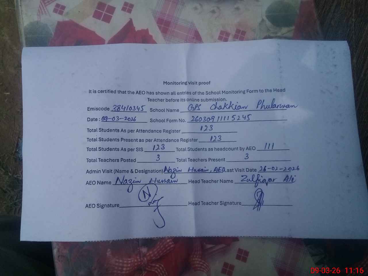 | EMIS Code: 38410345 | Name of School: GPS CHAKIAN PHULARWAN | |||