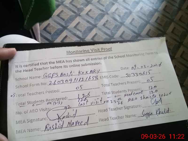 | EMIS Code: 31330615 | Name of School: GGPS BAST KOKARI | |||