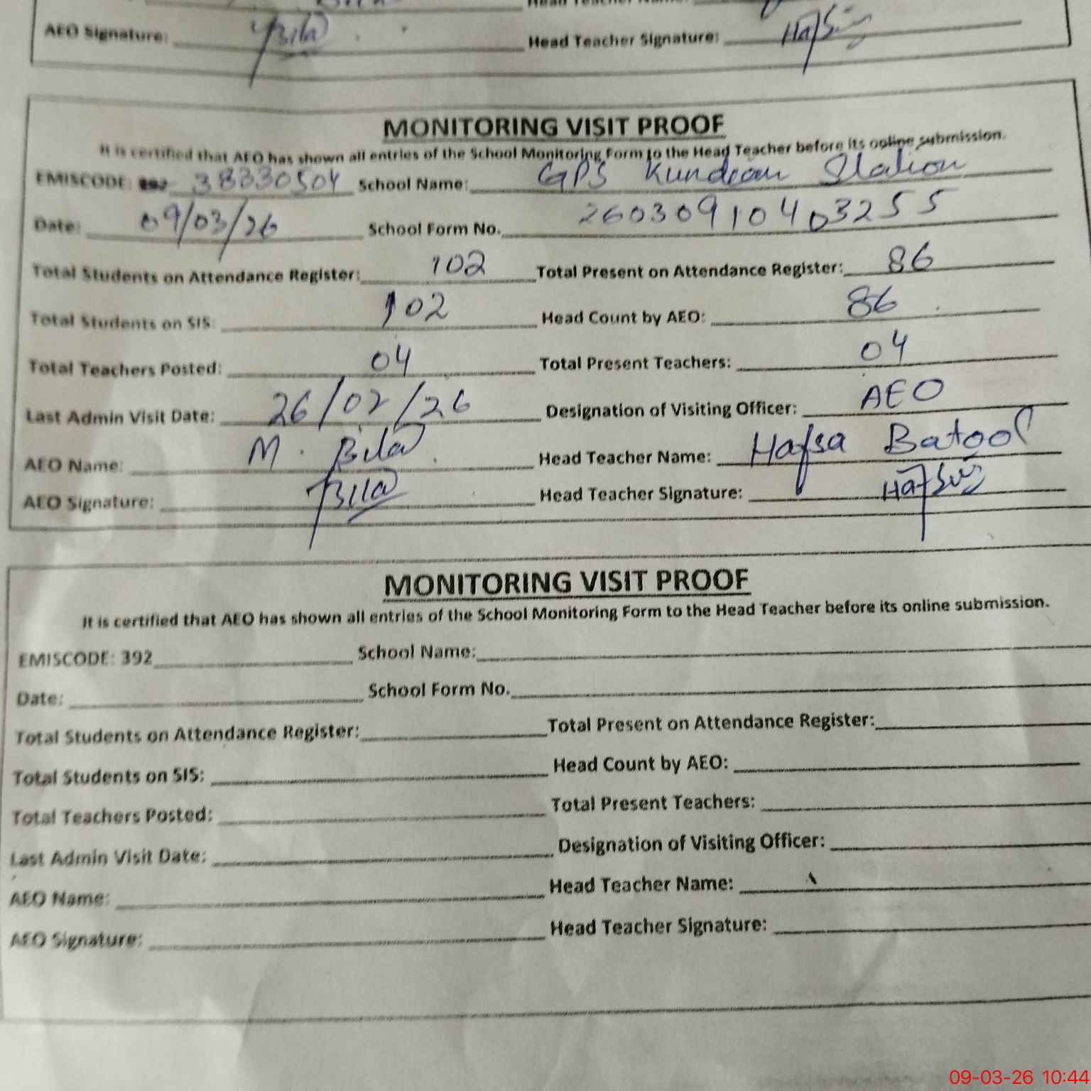 | EMIS Code: 38330504 | Name of School: GPS KUNDIAN STATION MAIN BAZAR | |||