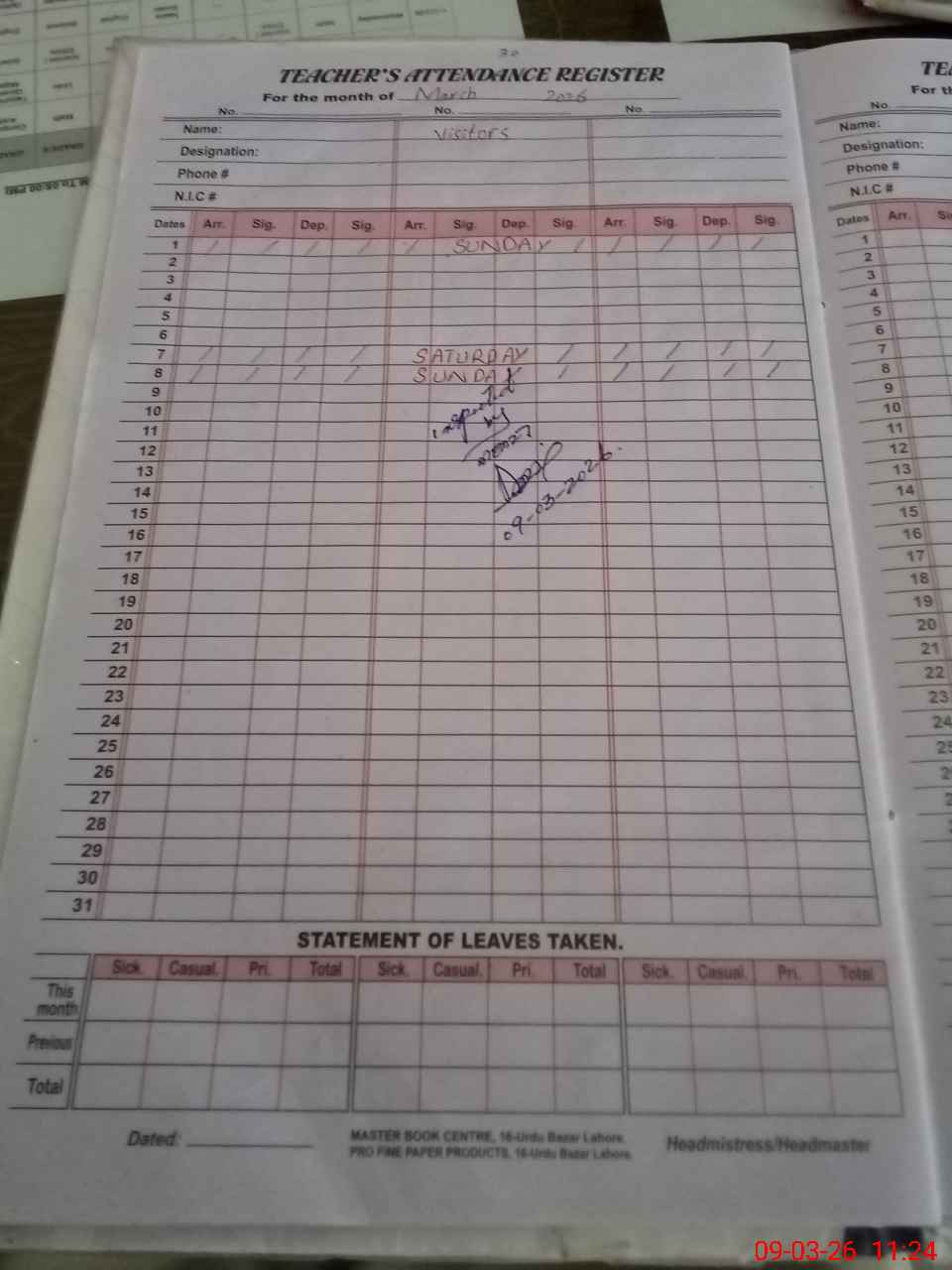 | Leave | Duty | Absent | Maternity | Medical | Ex- Pak |
