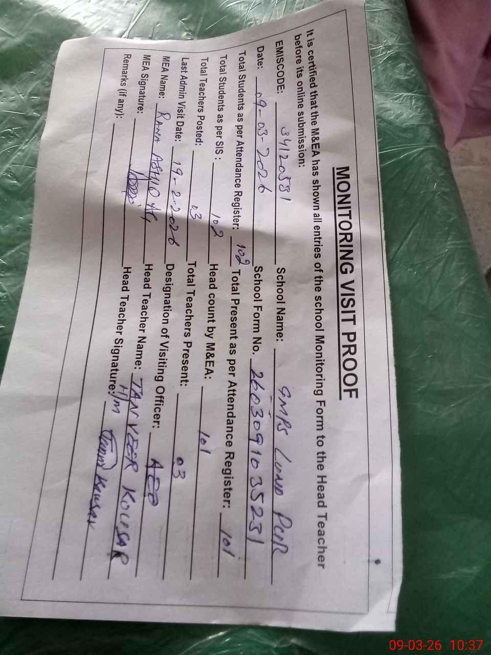 | EMIS Code: 34120531 | Name of School: GMPS LUND PUR | |||