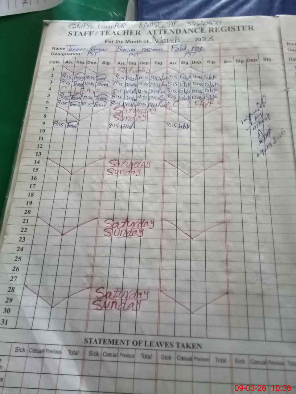 | Leave | Duty | Absent | Maternity | Medical | Ex- Pak |