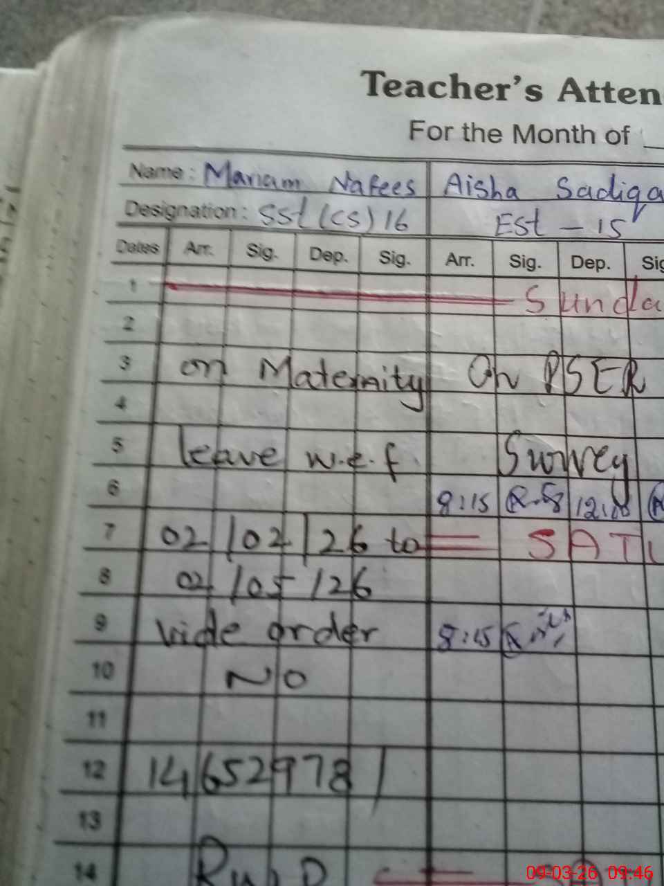 | 37**** | Is**** Ko**** | PST Science/Maths | Regular | 0 | 0 | 0 | 0 | 0 | 0 | 0 | 0 | 0 | Maternity |