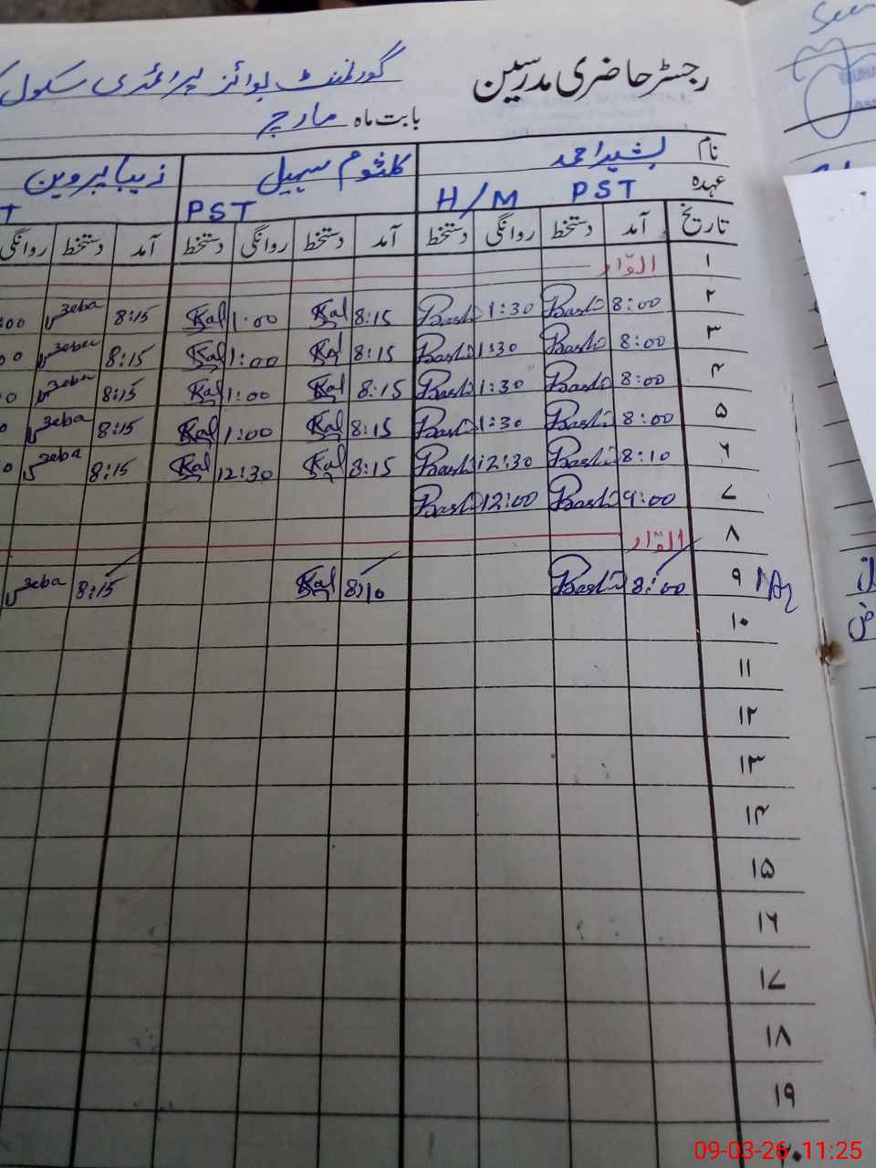 | Name: BA**** AH**** Designation: (School Headmaster's/Headmistress's) PST Phone/Cell Number: 03**** |