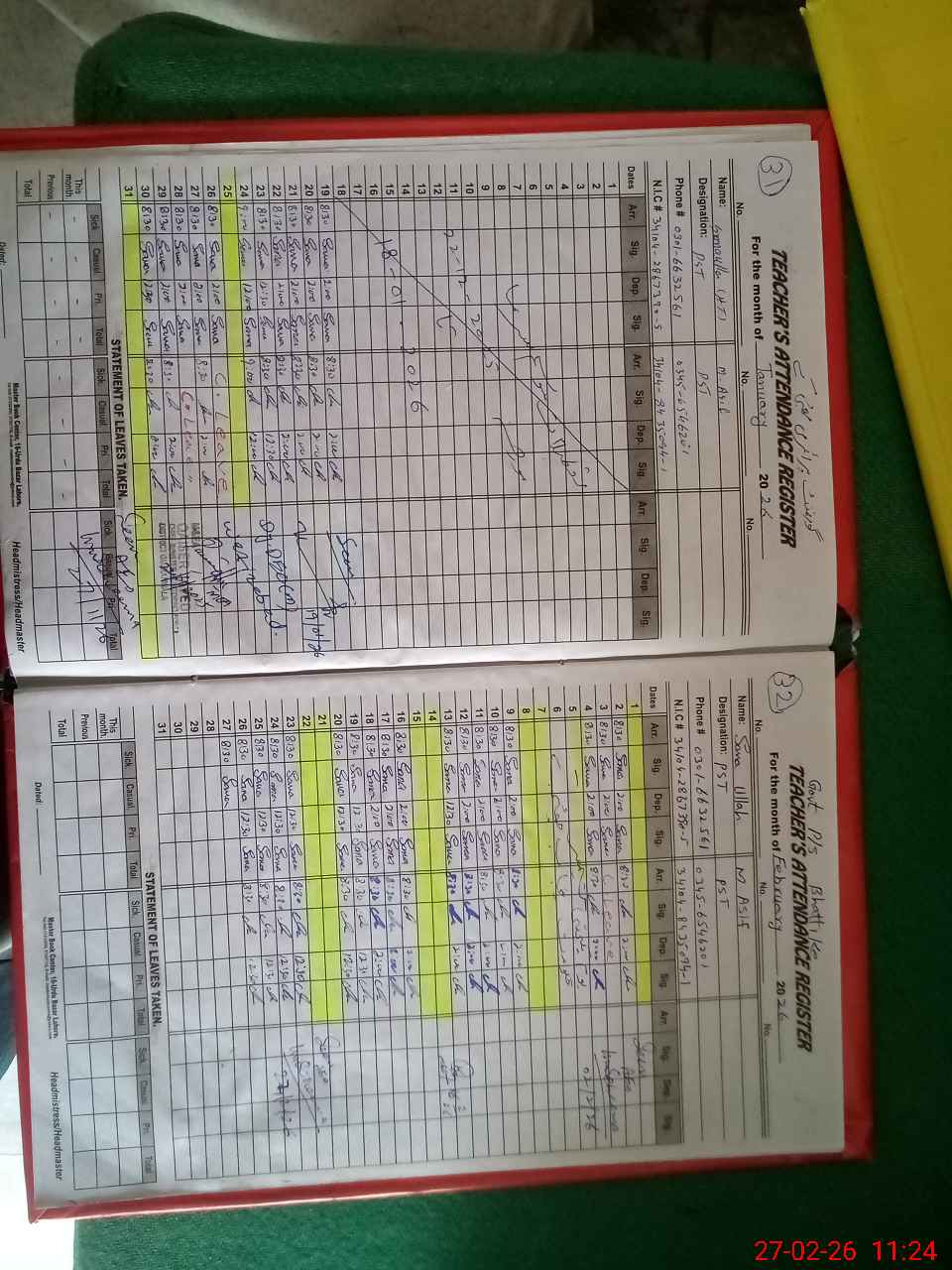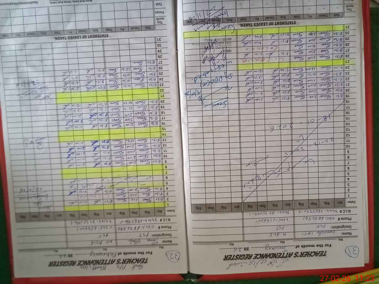 | Name: SA**** UL**** Designation: (School Headmaster's/Headmistress's) PST Phone/Cell Number: 03**** |
