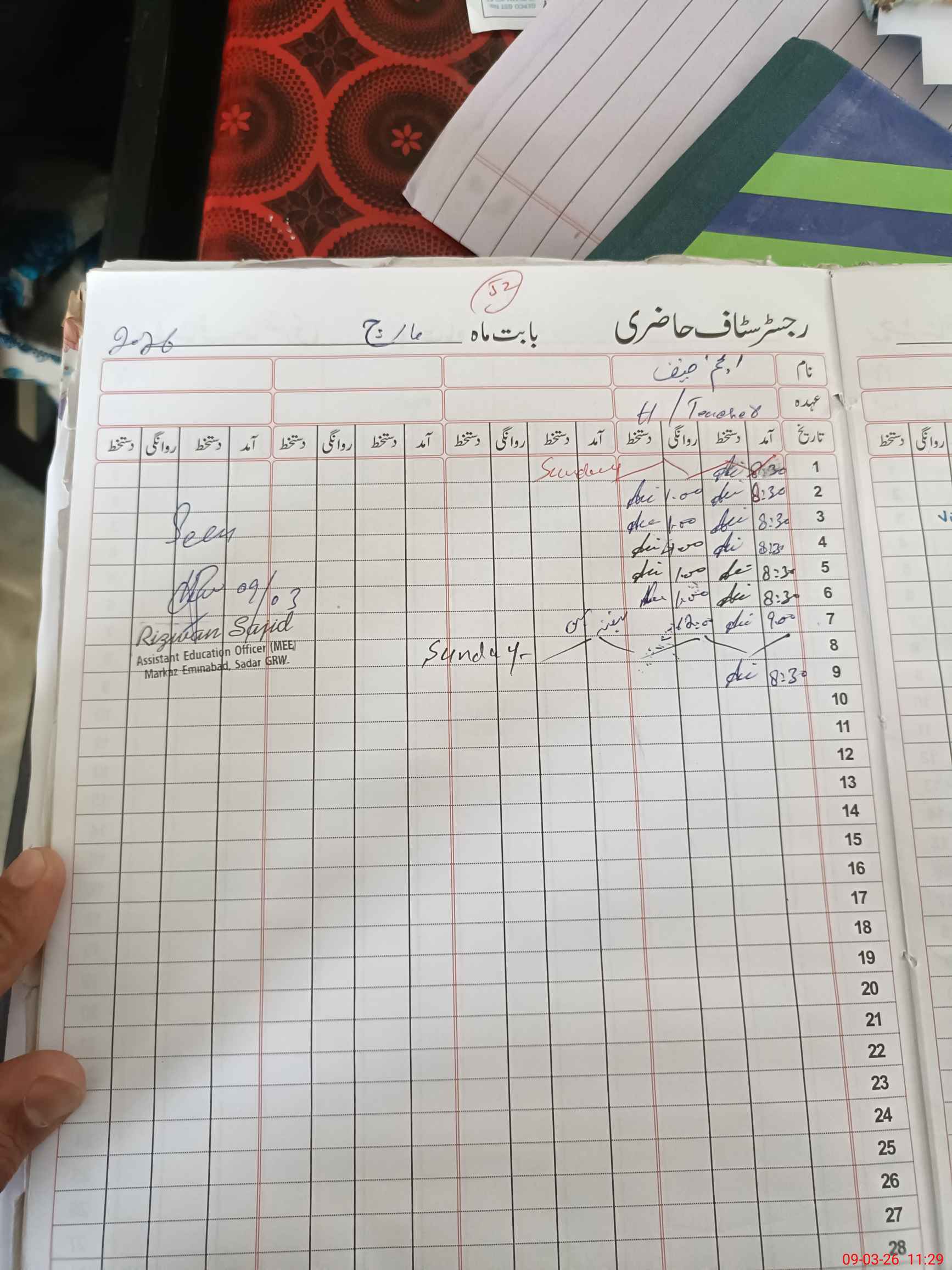 | Name: An**** Ha**** Designation: (School Headmaster's/Headmistress's) PST Phone/Cell Number: 03**** |