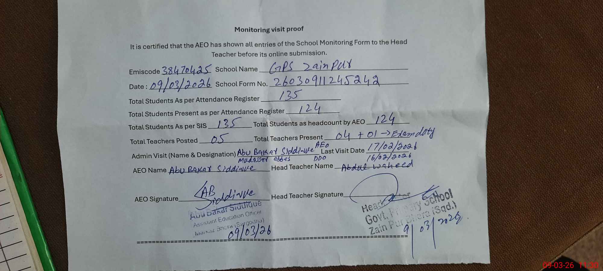 | EMIS Code: 38470425 | Name of School: GPS ZAIN PUR | |||