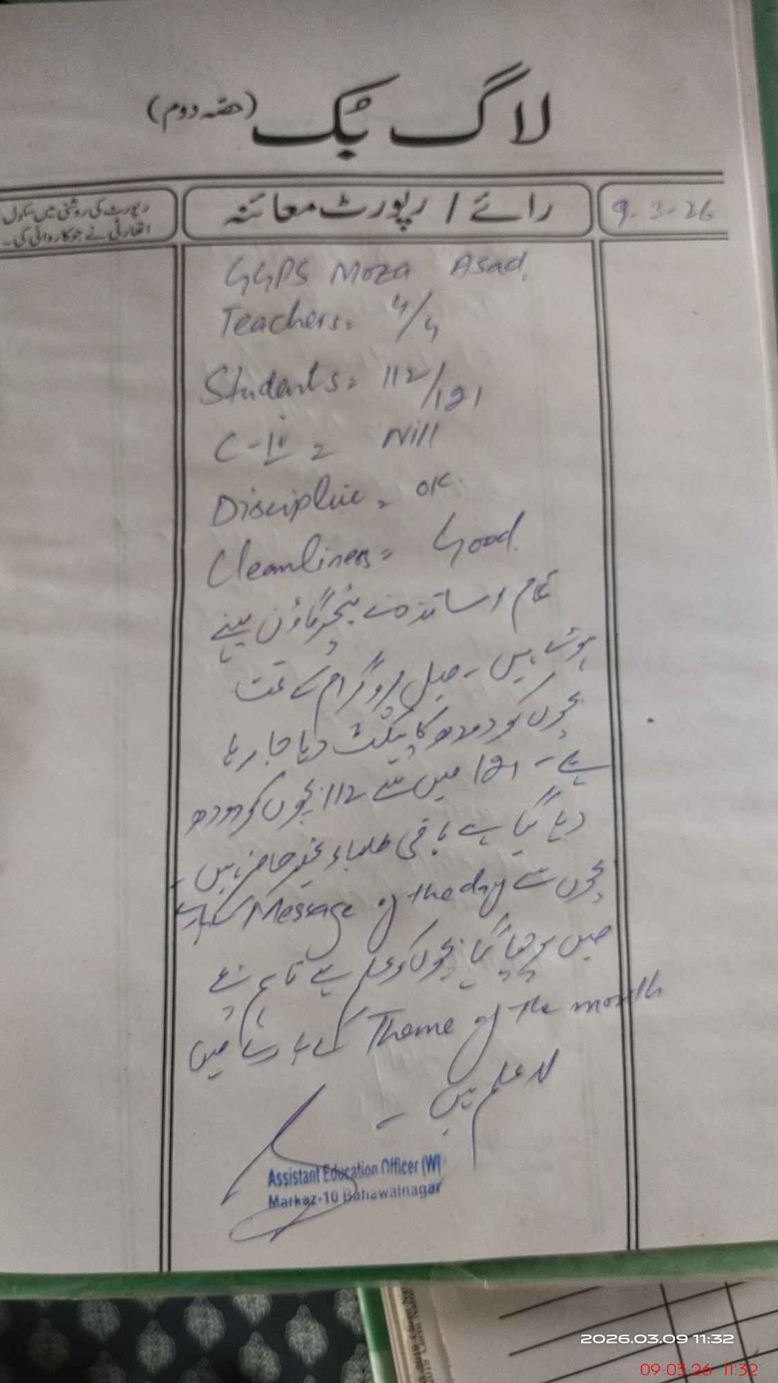 | District: BAHAWALNAGAR | Tehsil: BAHAWALNAGAR | Markaz: BWN.10-FEMALE | Level: Primary | |