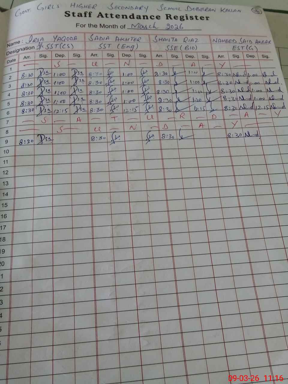 | 81**** | Sa**** Ta**** | PST Science/Maths | Regular | 0 | 0 | 0 | 0 | 0 | 0 | 0 | 0 | 0 | Maternity |