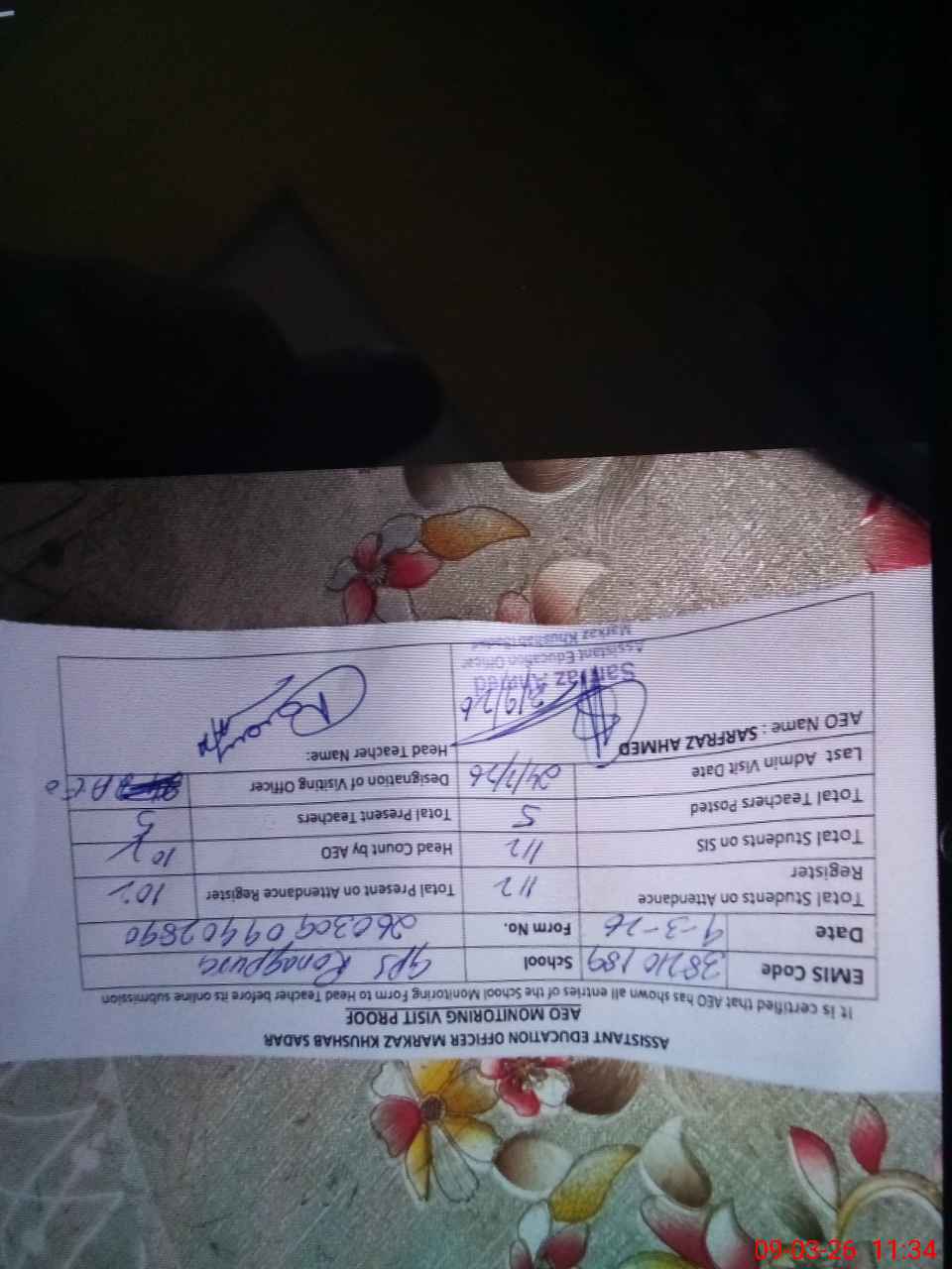 | Name: NA**** AK**** AM**** Designation: (School Headmaster's/Headmistress's) PST Phone/Cell Number: 03**** |