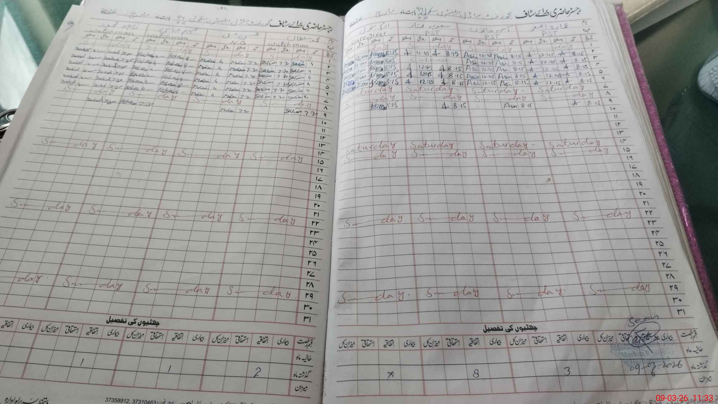 | 31**** | Za**** An**** | PST Science/Maths | Regular | 0 | 0 | 0 | 0 | 0 | 0 | 0 | 0 | 0 | Casual |