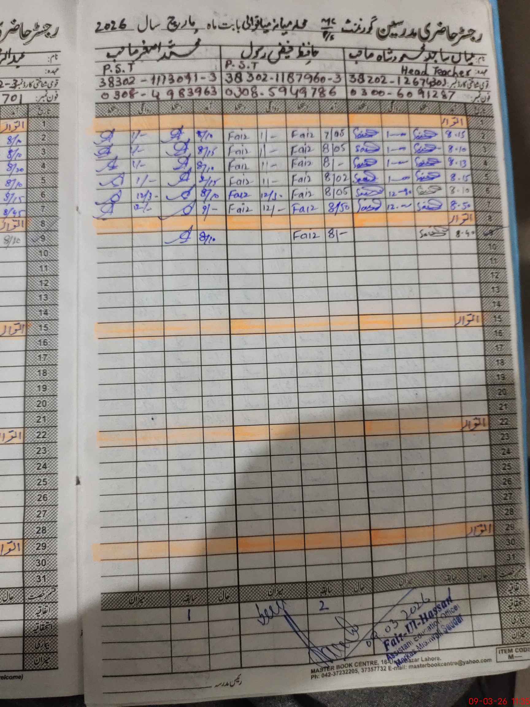 | Name: Sa**** Me**** Sh**** Designation: (School Headmaster's/Headmistress's) PST Phone/Cell Number: 03**** |