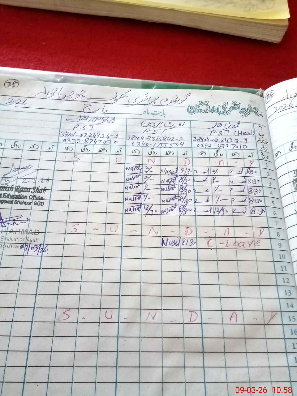 | Name: NU**** PA**** Designation: (School Headmaster's/Headmistress's) PST Phone/Cell Number: 03**** |