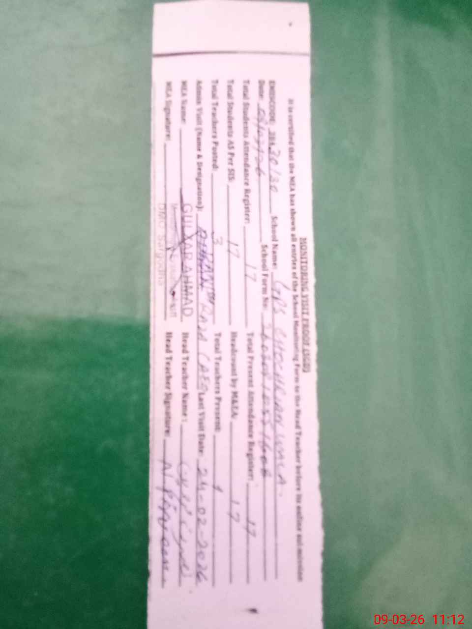 | EMIS Code: 38430130 | Name of School: GPS CHOCHRIAN WALA | |||