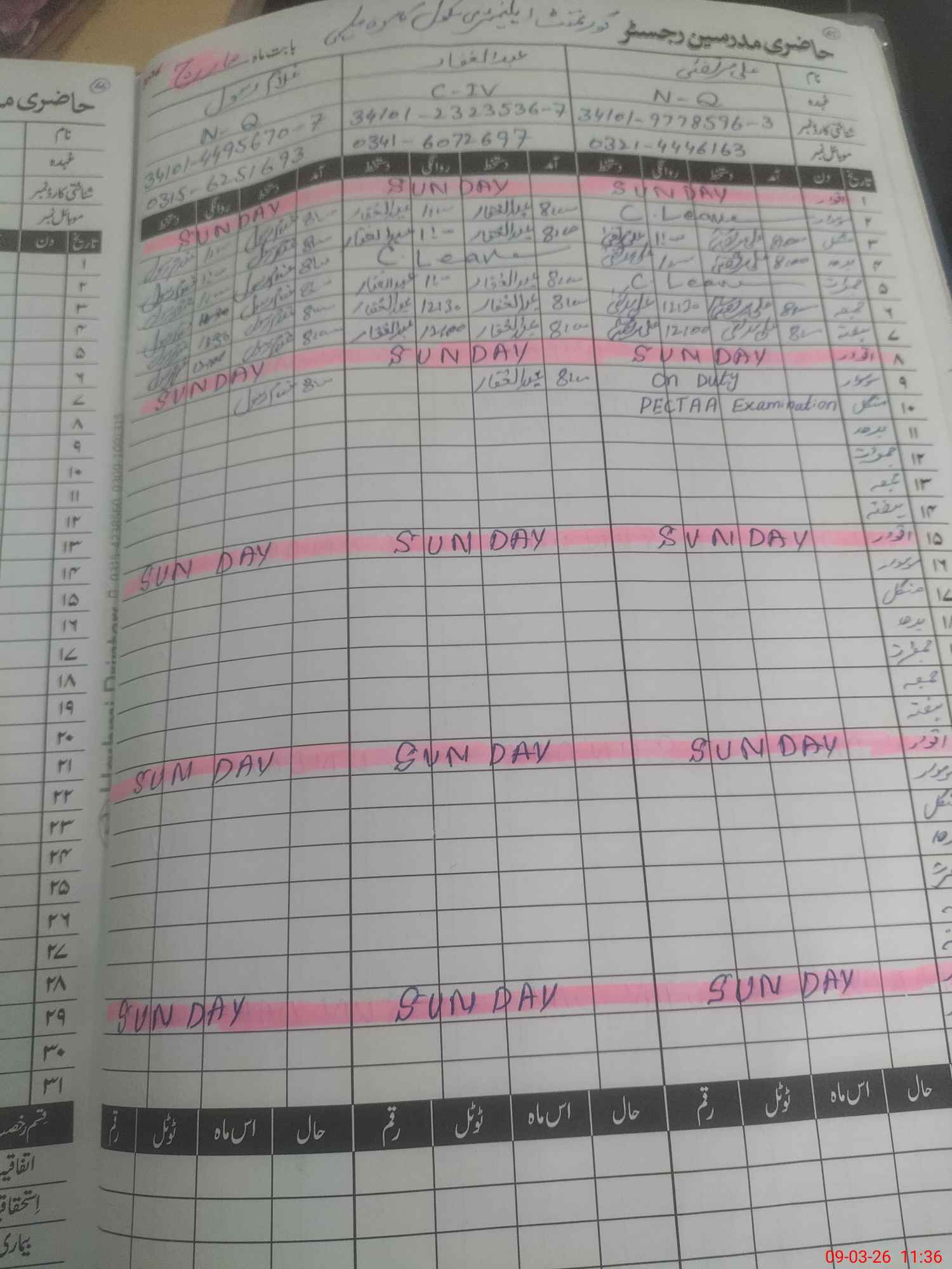 | 34**** | Kh**** Sh**** | PST Science/Maths | Regular | 0 | 0 | 0 | 0 | 0 | 0 | 0 | 0 | 0 | Exam Duty |