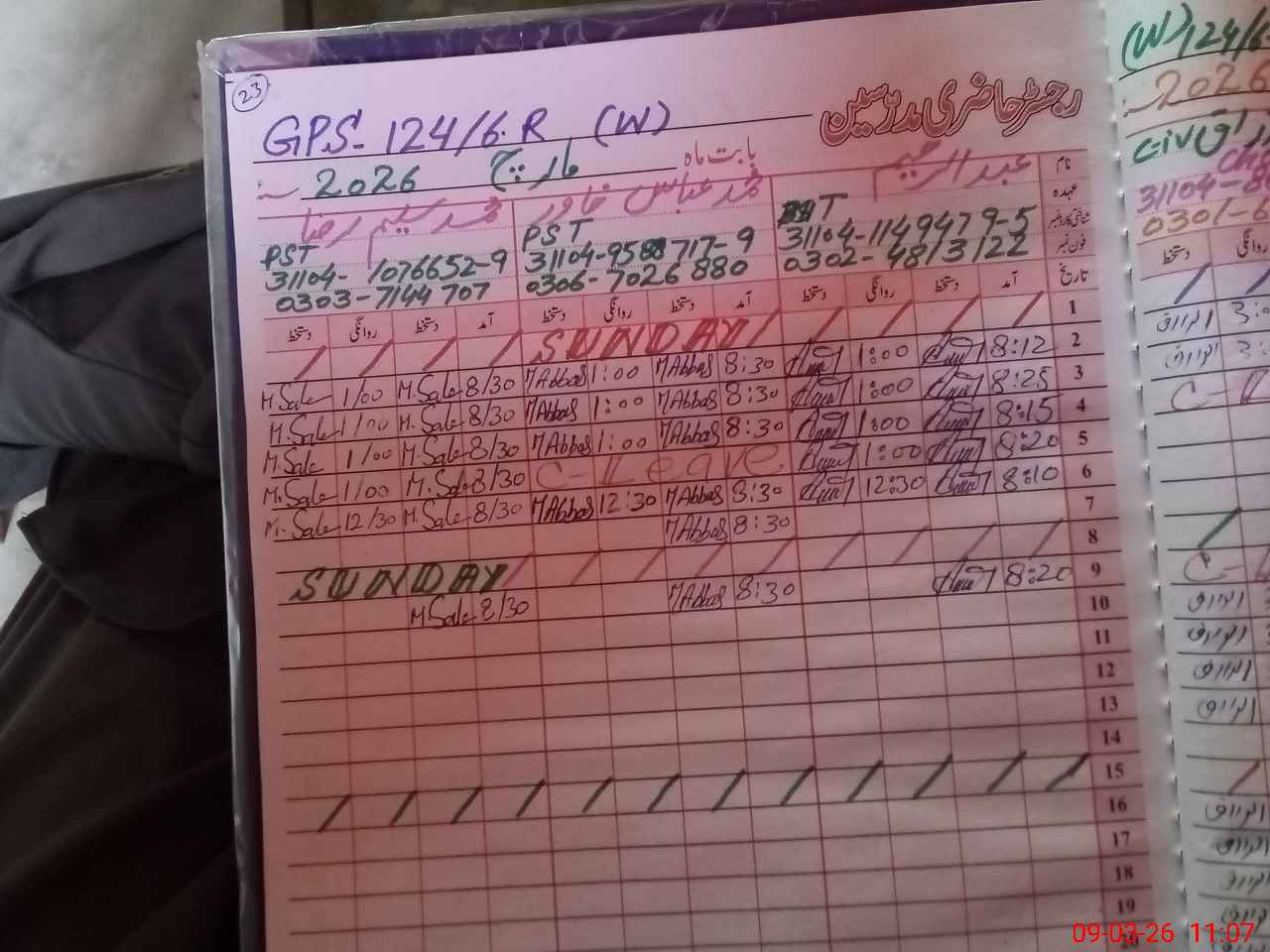 | PP No.: 283 | NA No.: 191 | Mauza: CHAK 124/6-R | UC Name: 142/6-R | UC No.: 87 |