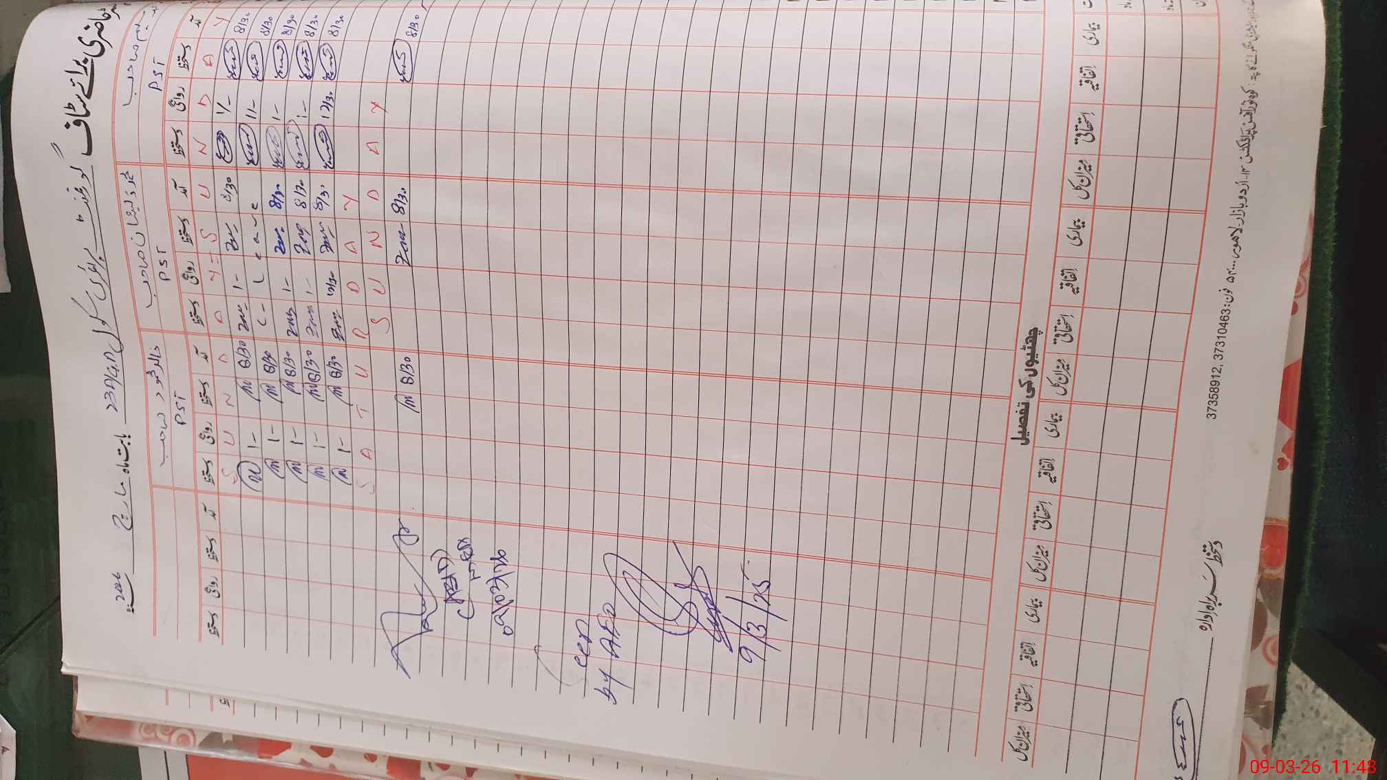 | CNIC | Full Name | Designation | R/C | Absence During Last Calender Month |