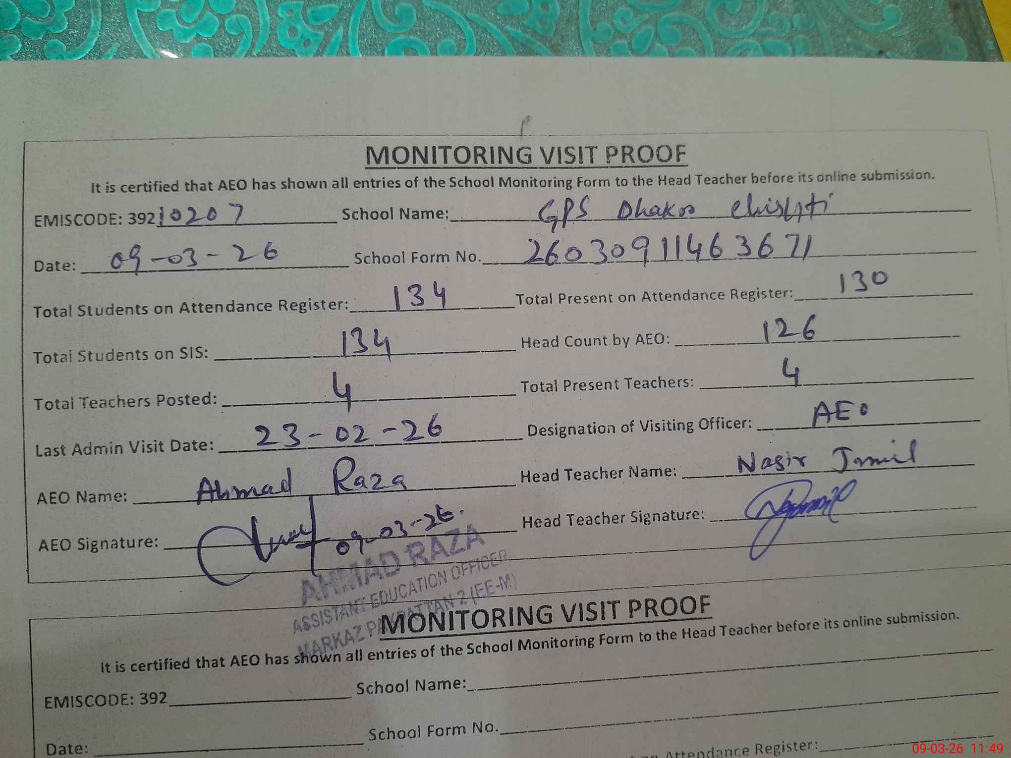 | EMIS Code: 39210207 | Name of School: GPS DHAKOO CHISHTI PO PAKPATTAN | |||
