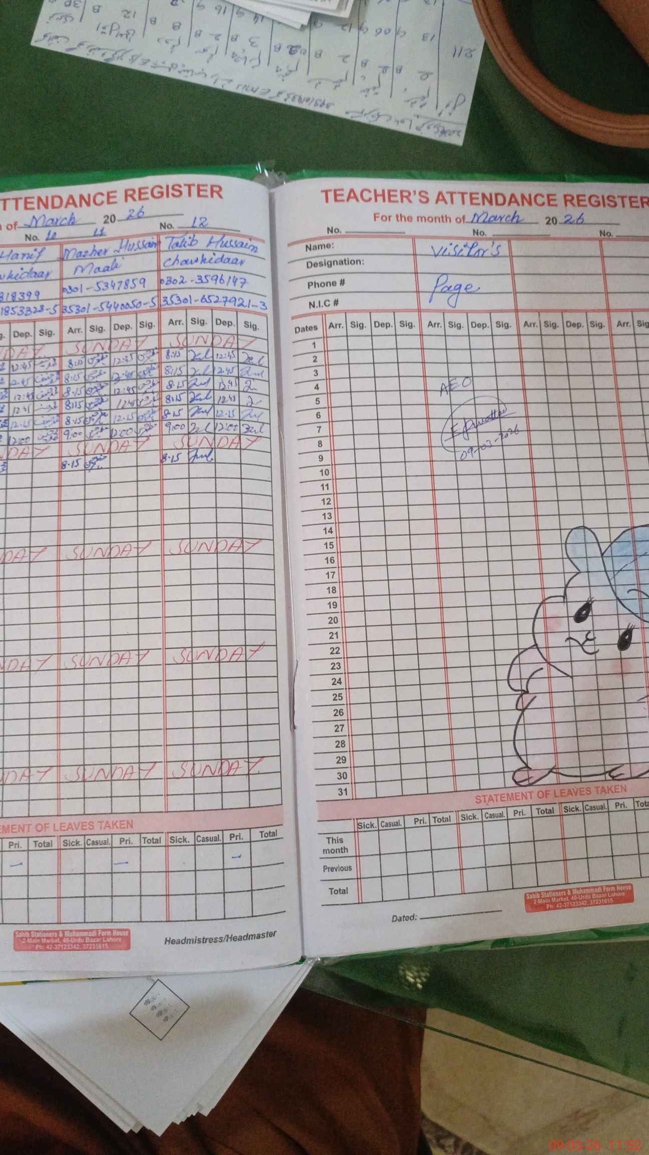 | Attendance Register | Head Teacher | MEA with School | Visit Proof |