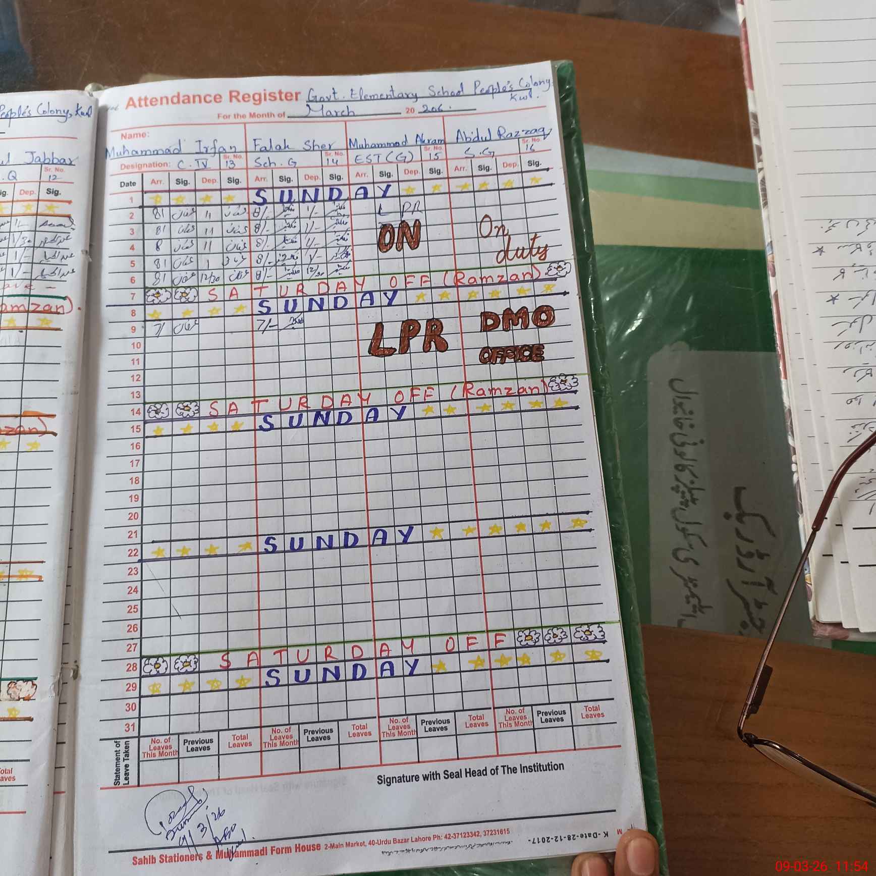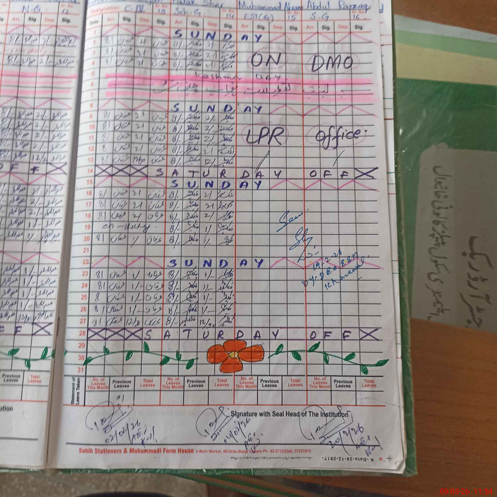 | CNIC | Full Name | Designation | R/C | Absence During Last Calender Month |