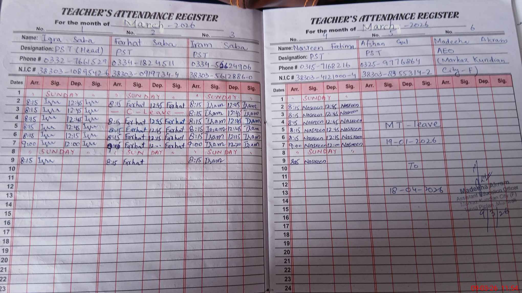 | Name: Iq**** Sa**** Designation: (School Headmaster's/Headmistress's) PST Phone/Cell Number: 03**** |