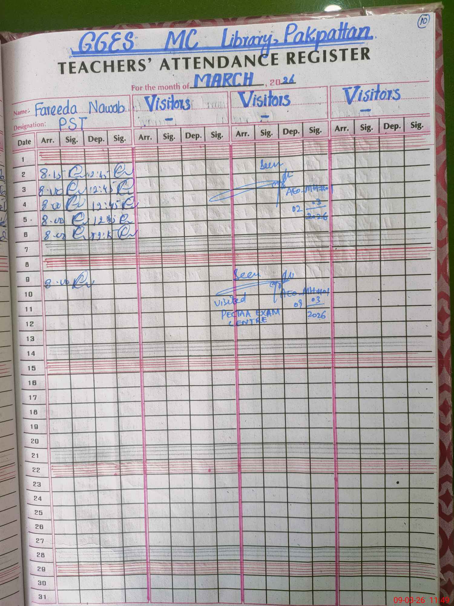 | Attendance Register | Head Teacher | MEA with School | Visit Proof |