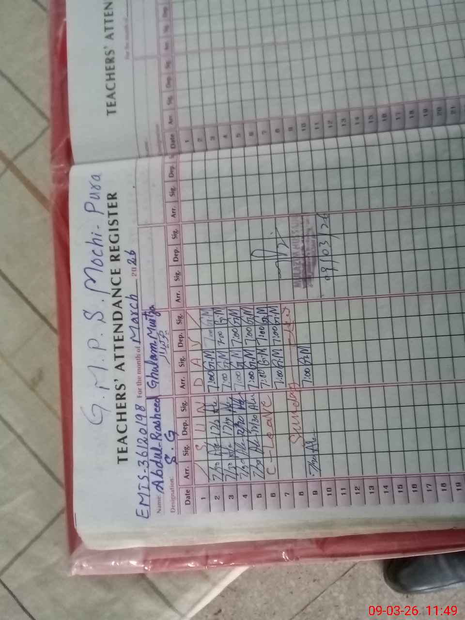 | EMIS Code: 36120198 | Name of School: GMPS MOCHI PURA SHUJABAD DISTT. MULTAN | |||