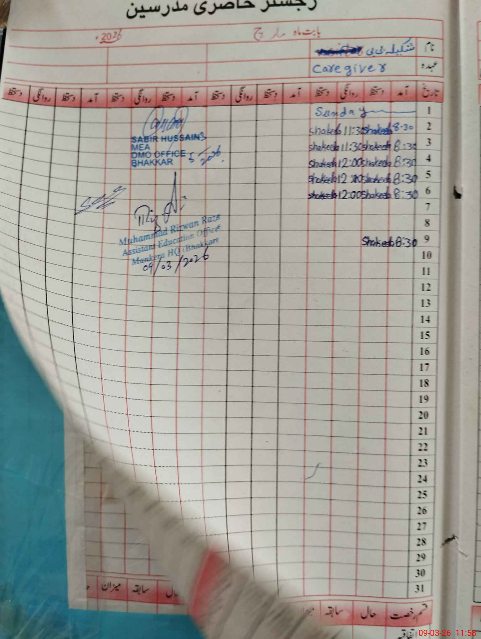 | Name: Aa**** Ha**** Designation: (School Headmaster's/Headmistress's) PST Phone/Cell Number: 03**** |