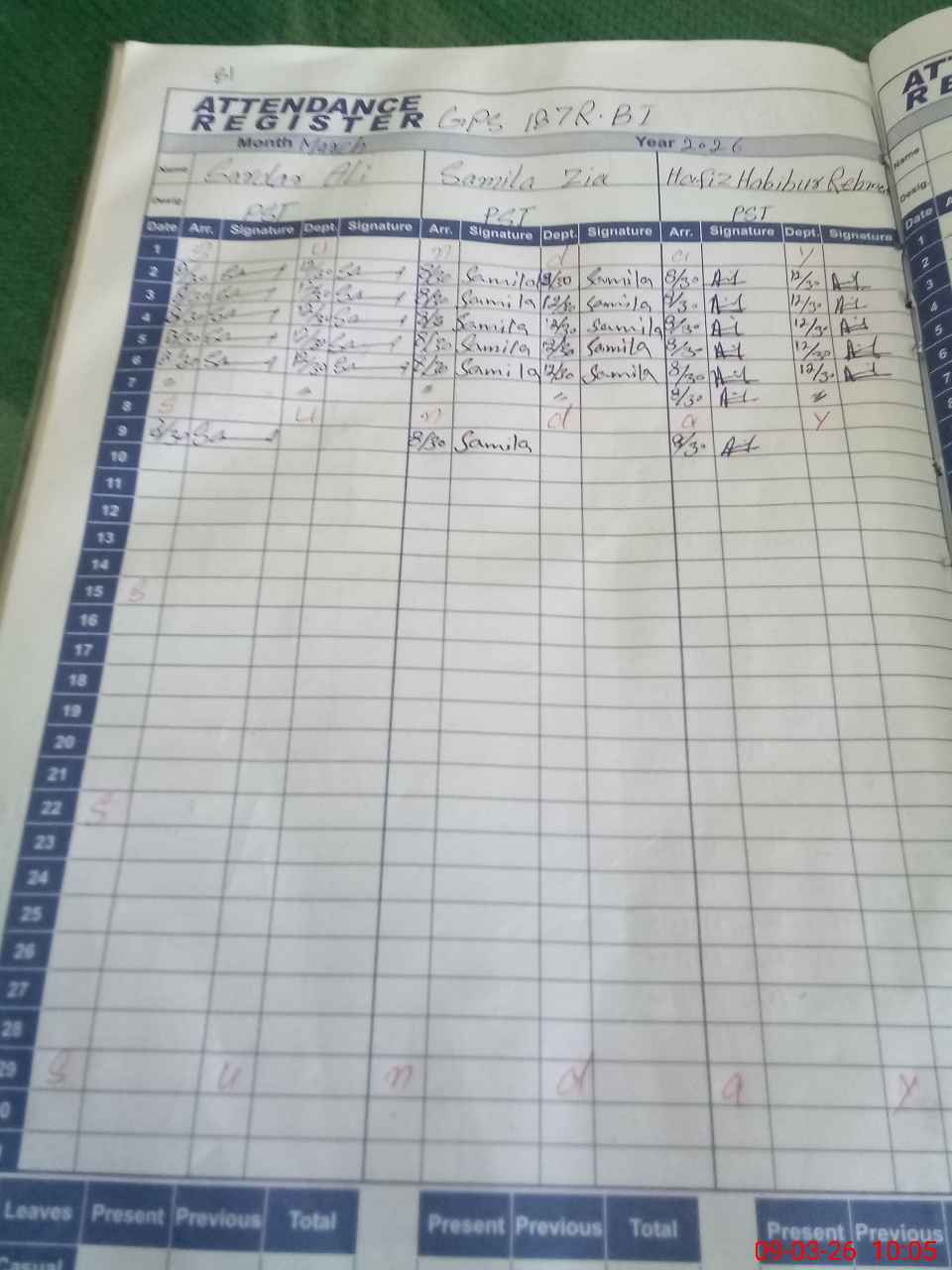 Leave Type | Remarks for today (Leave,Training, Exam,Absent,Late, Other duty) |