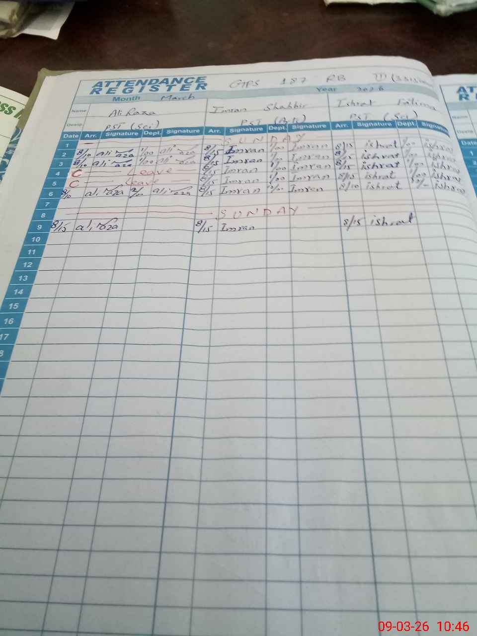 | CNIC | Full Name | Designation | R/C | Absence During Last Calender Month |