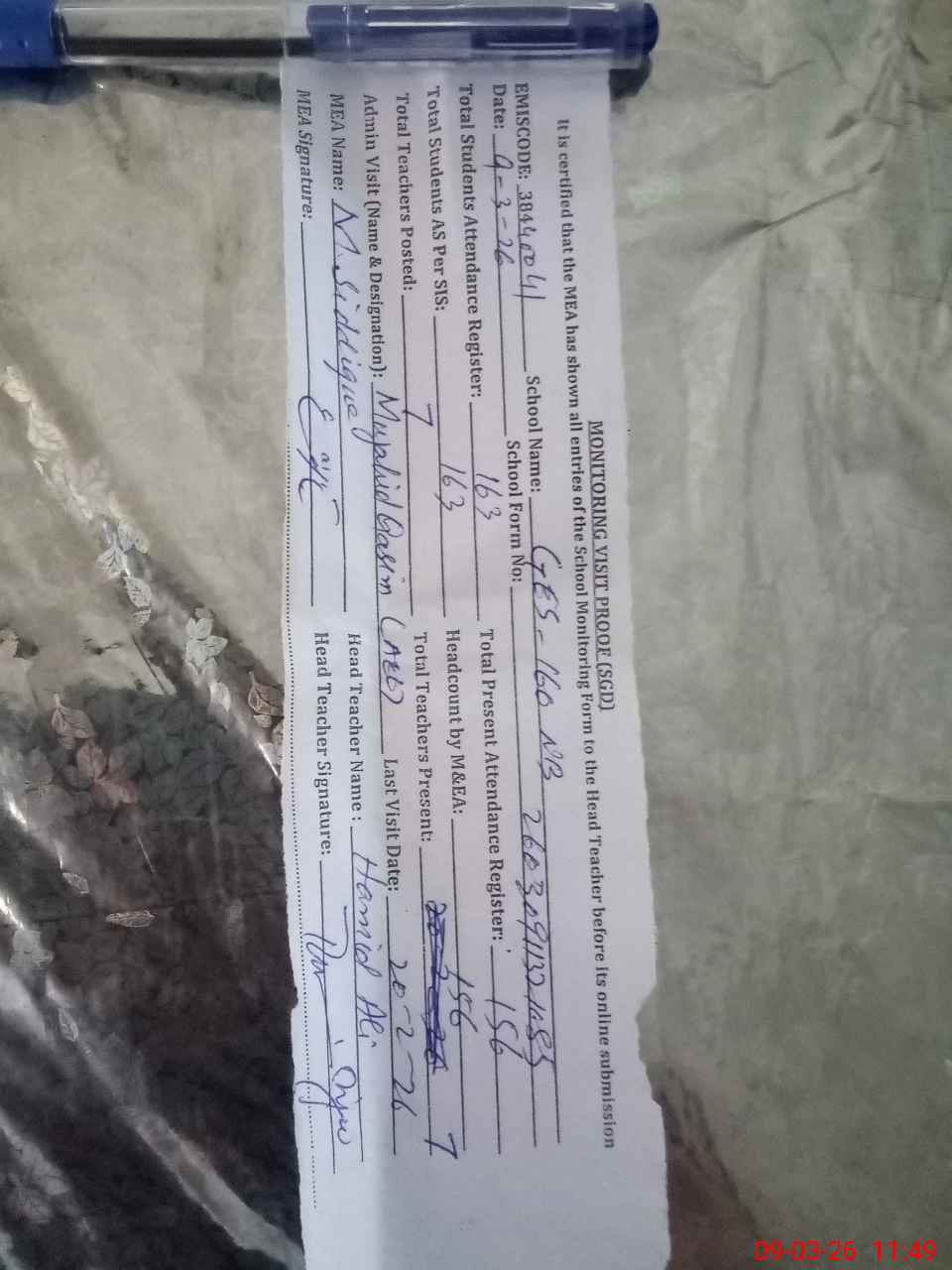 | EMIS Code: 38440041 | Name of School: GES CHAK NO.160 NB | |||