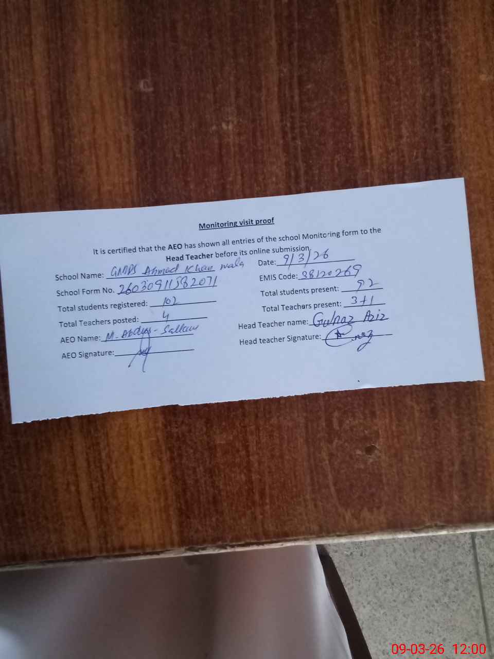 | EMIS Code: 38120269 | Name of School: GMPS AHMAD KHAN WALA | |||